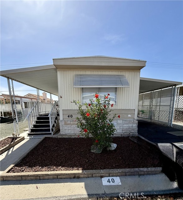 Fantastic 2 bedroom 2 bath manufactured home with a WOW outdoor space! The front porch entrance brings you into the living room with a vaulted ceiling & fireplace.