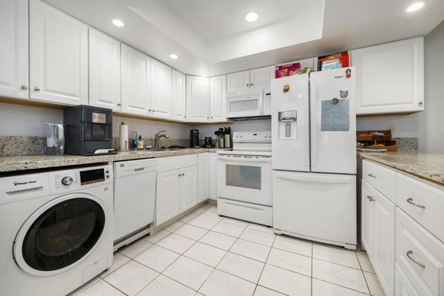 Experience true resort-style desert living in this beautifully remodeled 1 bedroom, 1 bathroom upper-level end unit condo located in the highly desirable Mission Lakes Country Club.