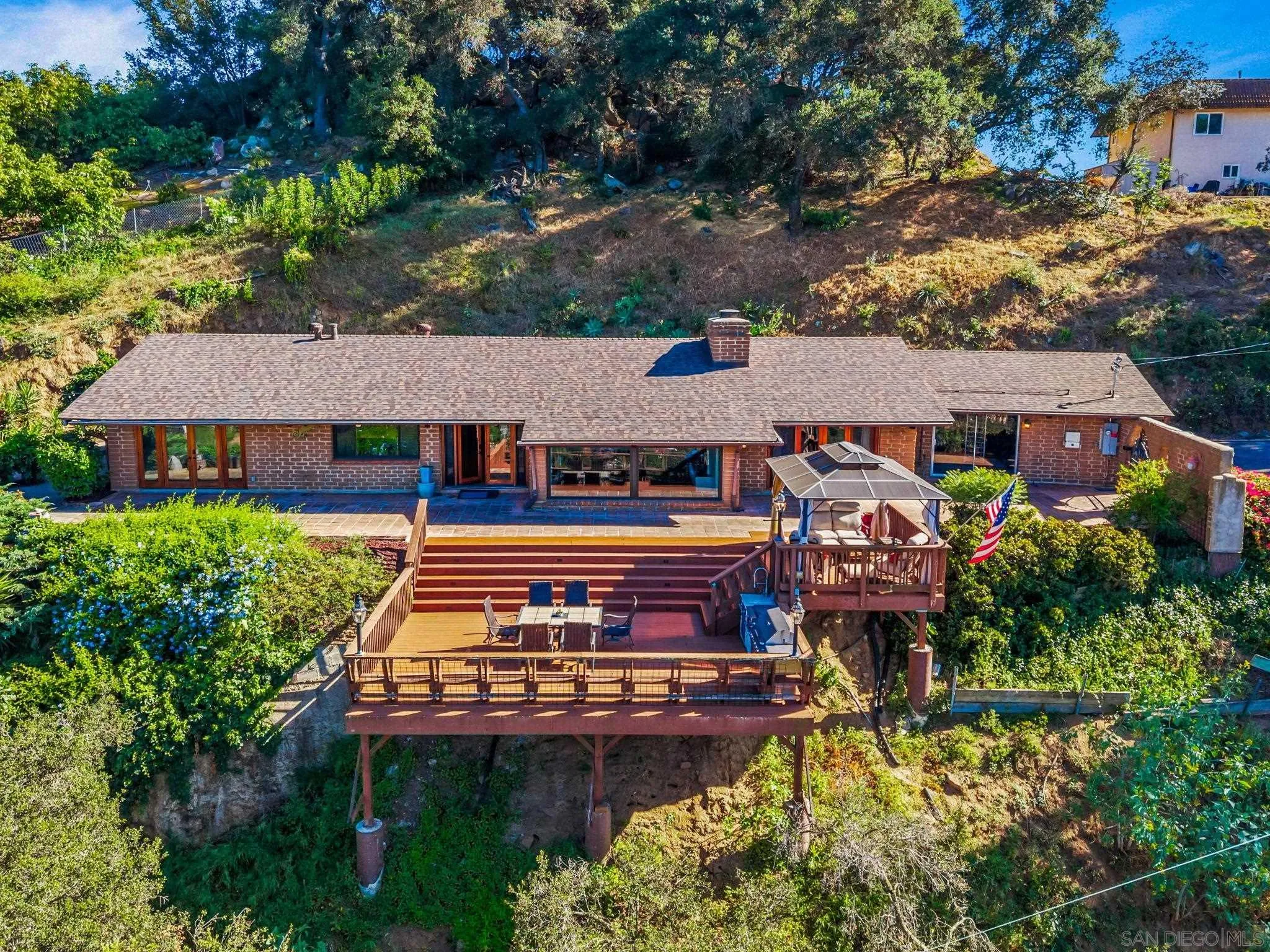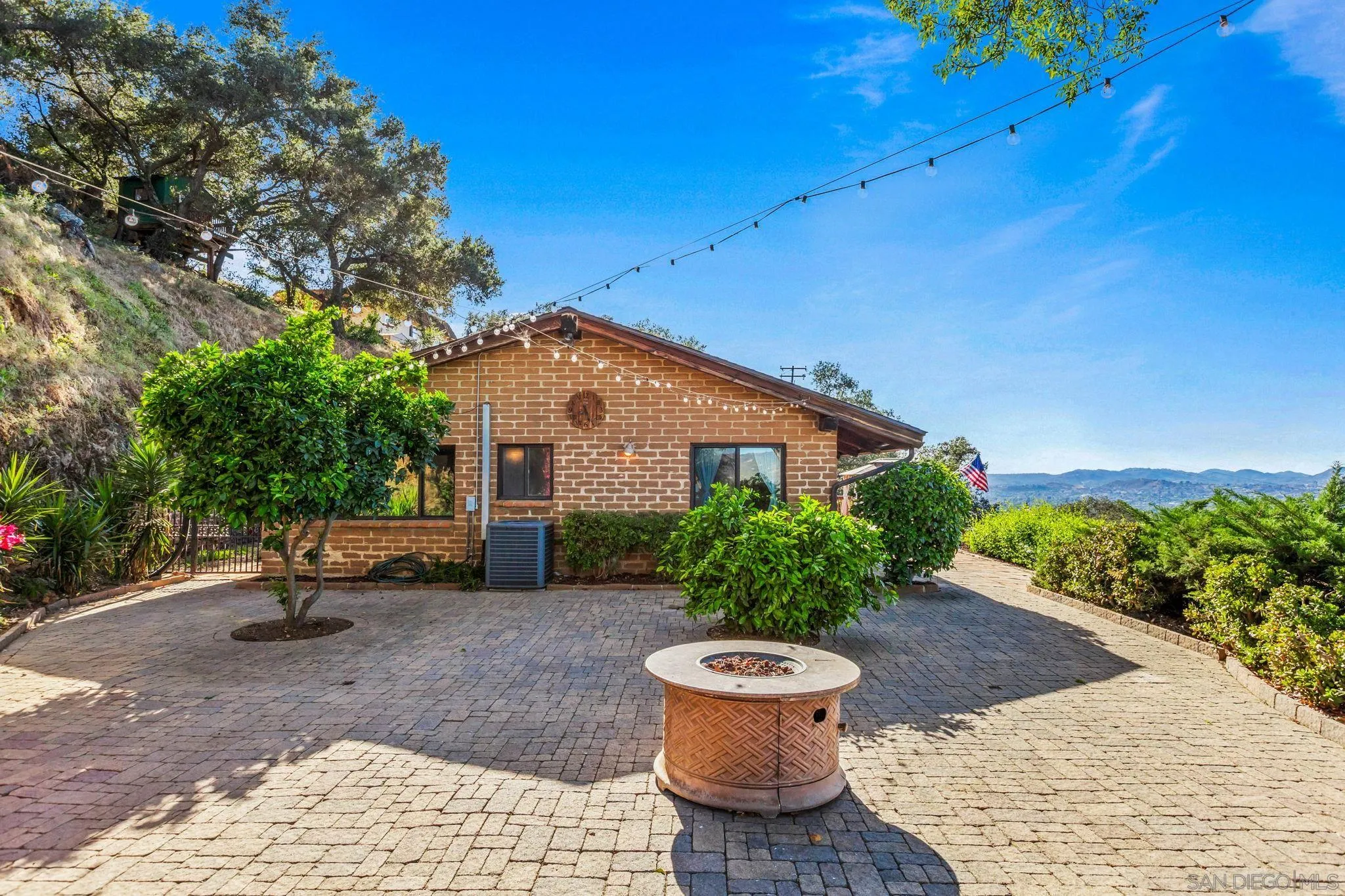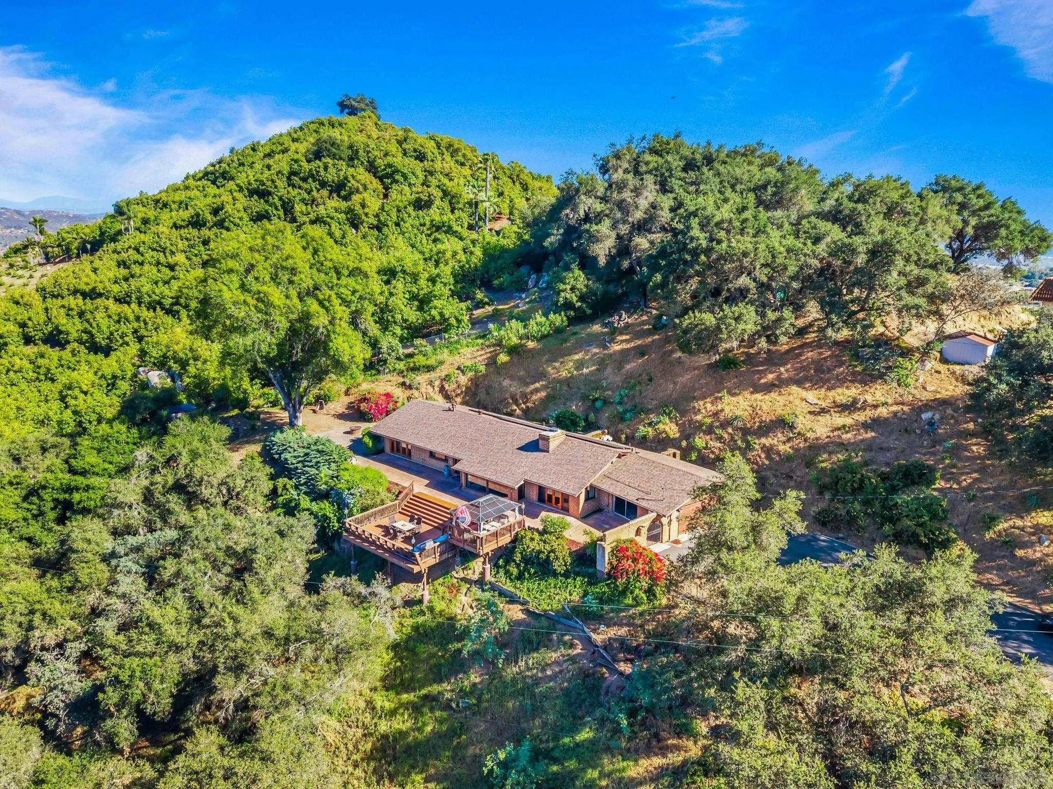 Welcome to this charming and rarely available adobe-style home, rich in character and warmth. Enjoy sweeping, incredible views from nearly every room, and unwind on your private deckâperfect for unforgettable afternoons and evening sunsets. Set on a spacious lot, this distinctive property offers a rare blend of privacy, functionality, and timeless appeal. The generously sized living room showcases classic adobe walls, exposed beam ceilings, and a cozy fireplace, creating an inviting atmosphere for relaxing or entertaining. Thoughtfully maintained, the home features a new roof and fully owned solar for enhanced energy efficiency. The open-concept layout flows seamlessly into an expansive kitchen, ideal for gatherings and everyday living. Vaulted ceilings and a neutral color palette enhance the light, bright, and airy ambiance throughout. One of the rooms features a fun loft space, adding charm and versatility. Step outside to a beautifully landscaped backyard designed for enjoying the outdoors. A thriving orchard includes orange, apricot, tangerine, fig, grapefruit, pomegranate, and lemon trees. Additional highlights include an attached 2-car garage and even a treehouse with ample space to make this exceptional property your own.