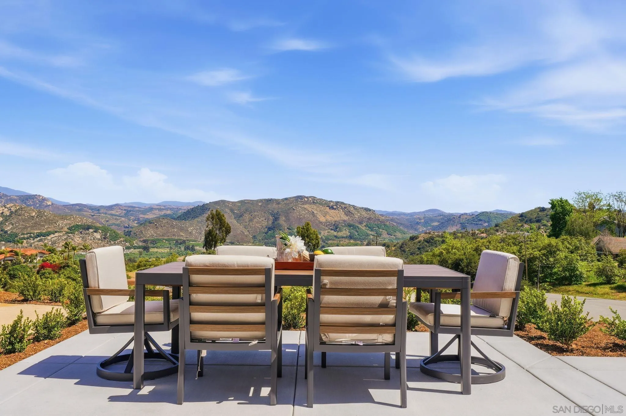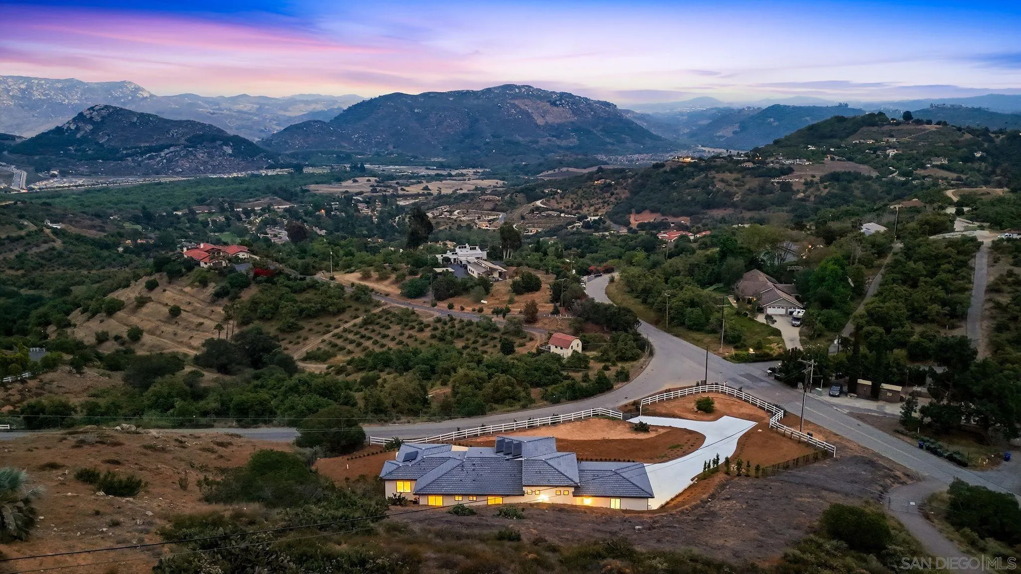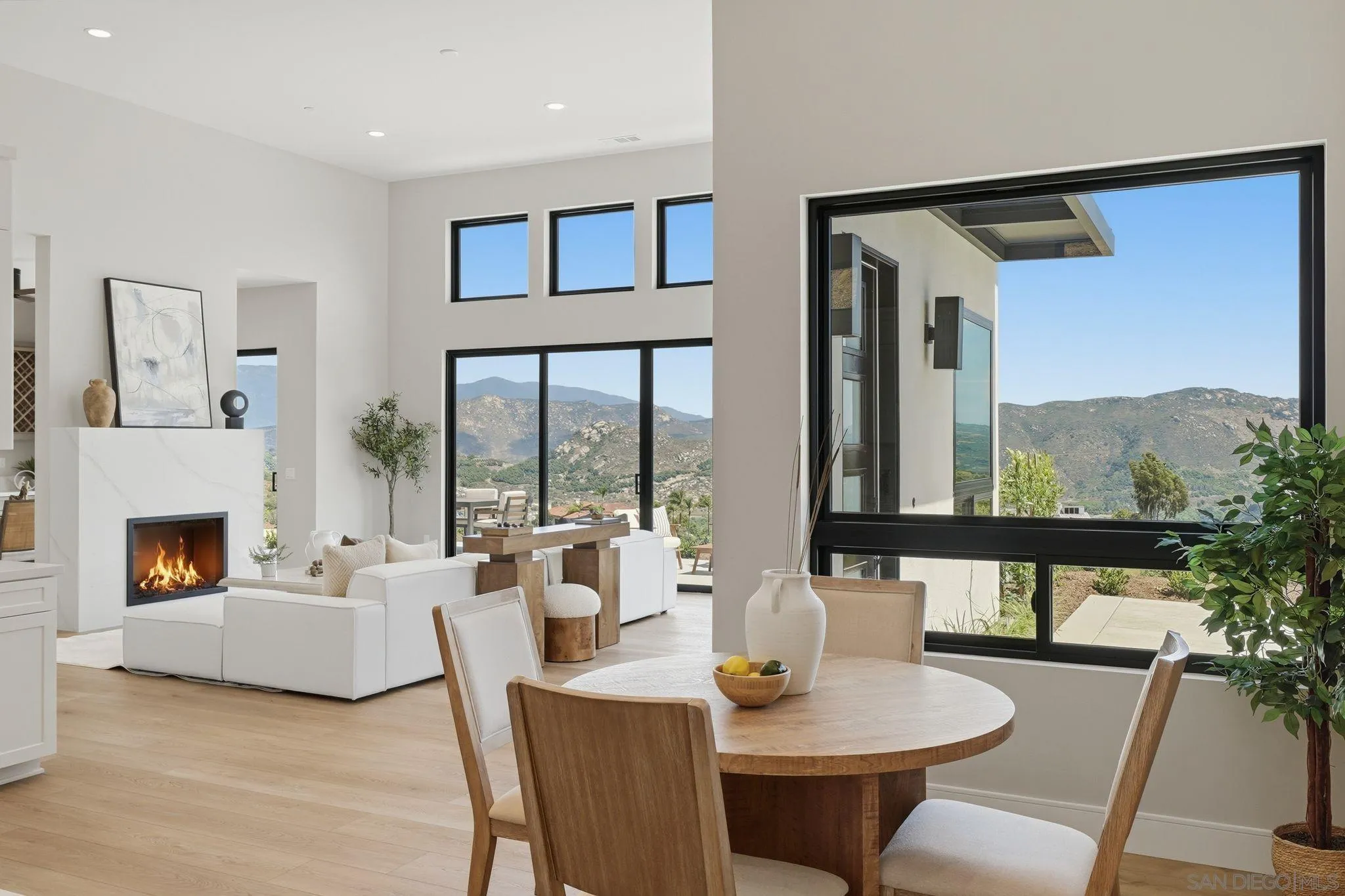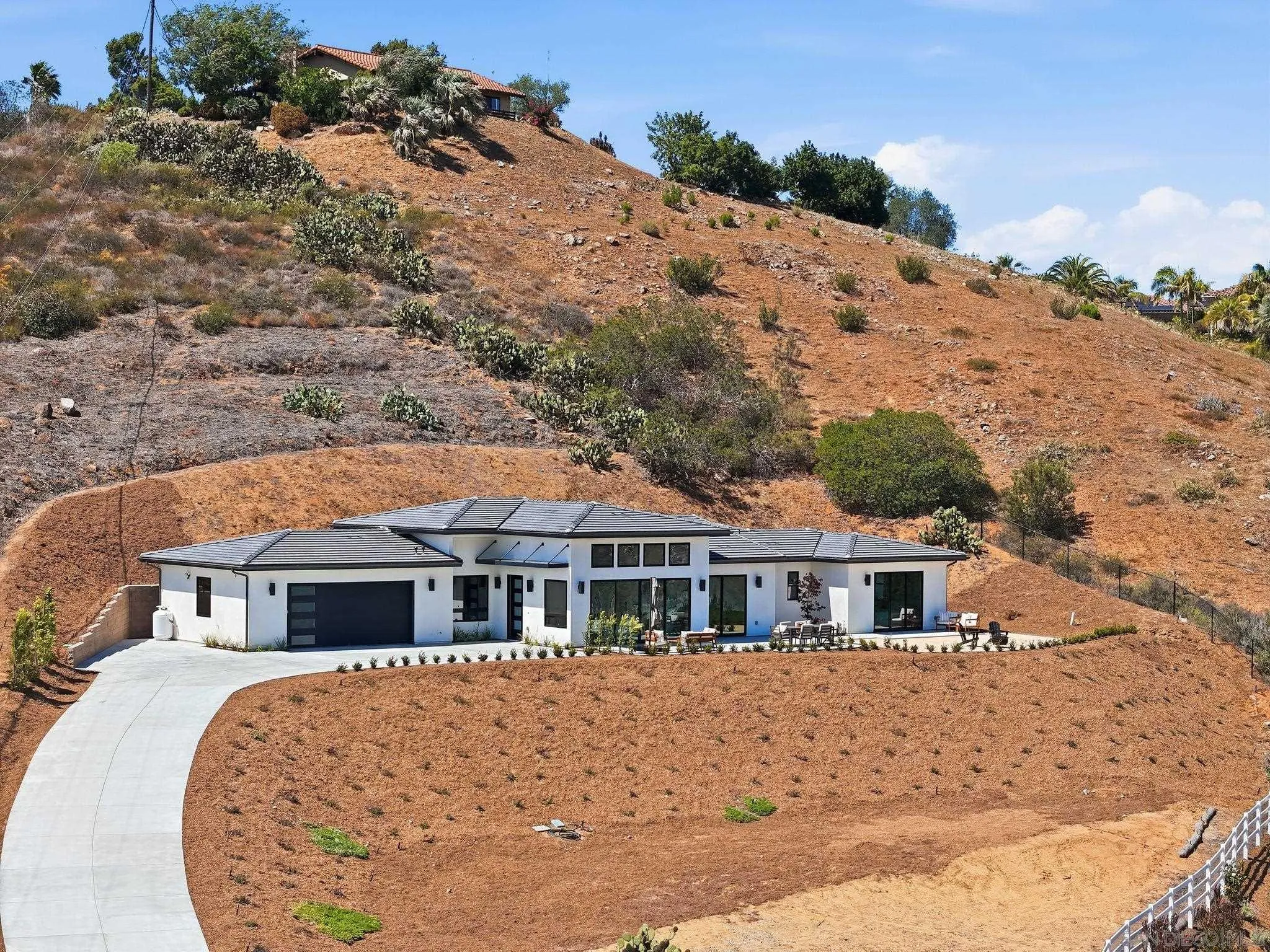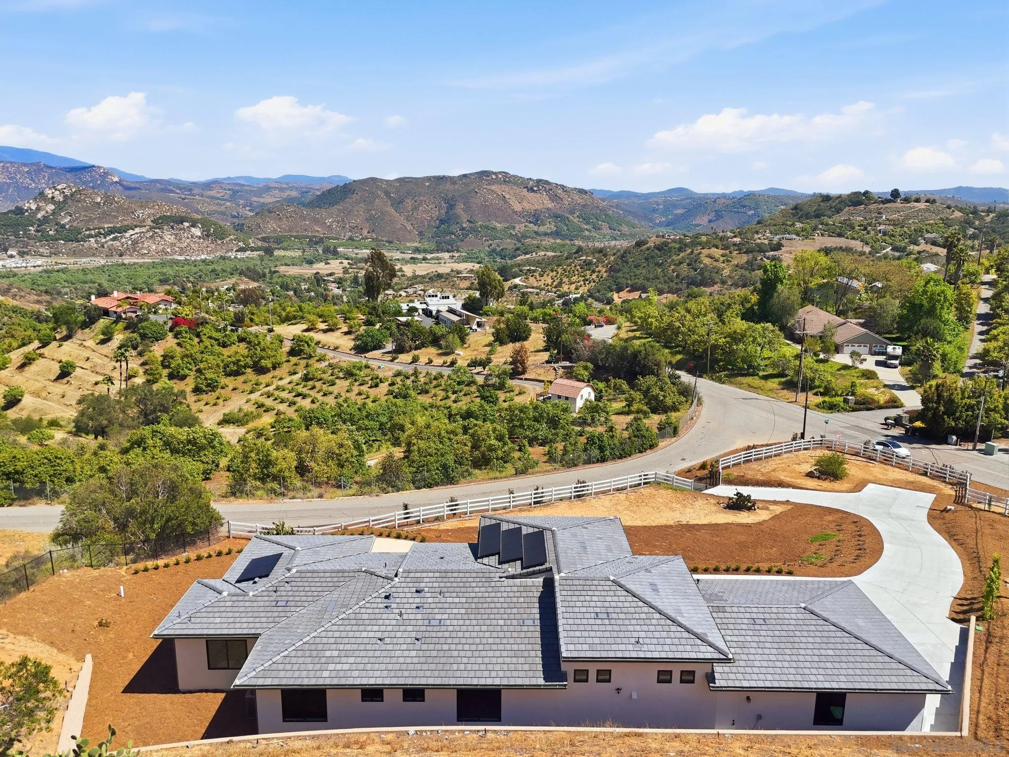 This isn’t just a home with a view—it’s a home built around the view. Set on 3.79 acres in the rolling hills of Fallbrook, this single level 3 BR plus office 3.5 BA brand-new home is ready for immediate occupancy, with sweeping, unobstructed east-facing mountain views that will take your breath away from the moment you arrive. From sunrise to golden hour, the scenery here is nothing short of spectacular. Expansive windows & oversized sliding doors were intentionally designed to capture every inch of the surrounding landscape, flooding the home with natural light and creating a seamless connection between indoor living & the beauty beyond. Inside, the 2,421 sq. ft. layout was crafted to complement the views at every turn. Soaring 14-foot ceilings in the kitchen & great room enhance the sense of openness, while the quartz fireplace anchors a space that feels both grand & inviting. The chef’s kitchen features white shaker cabinetry, quartz counters, a statement island, & premium appliances, perfect for entertaining with a backdrop that never gets old. Each of the 3bdrms offers its own private bath, creating a retreat-like feel throughout, while the flexible bonus room allows for a fourth bedroom, office, or creative space. All with the potential to take in those same stunning vistas. The primary suite is truly something special, wake up to panoramic mountain views, unwind in a spa-inspired bathroom with a freestanding soaking tub & oversized walk-in shower, end your day with a sense of calm only a setting like this can provide. And then there’s the land…