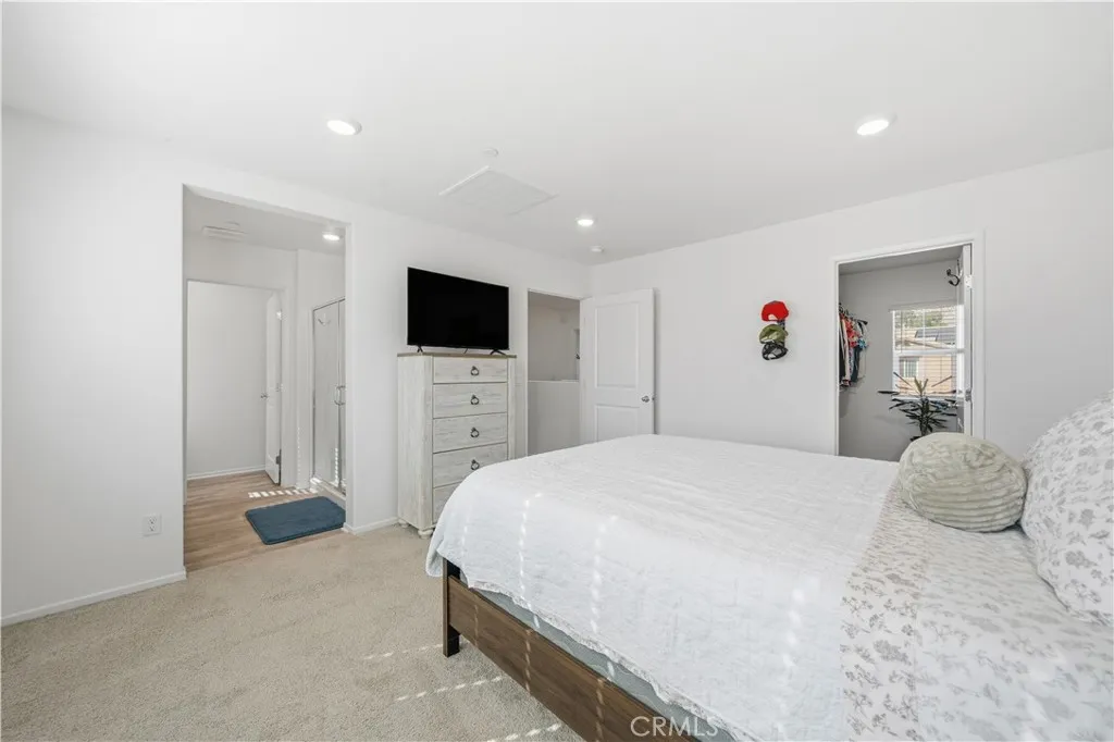Welcome to your new home in the heart of Winchester at Pradera Place! This stunning newly built 3-bedroom, 2.5-bath residence offers the perfect blend of modern comfort, energy efficiency, and Southern California charm. Step inside to discover a bright, open-concept living area filled with natural light, stylish finishes, and plenty of room to entertain. The spacious kitchen boasts sleek granite countertops, stainless steel appliances, and a large center island that has a built in two-top table attached. Upstairs, youll find three generous bedrooms, including a luxurious primary suite complete with a walk-in closet and a private en-suite bathroom featuring dual sinks and a large walk-in shower. Enjoy low-maintenance living with turf landscaping in both the front and backyard, offering year-round greenery and easy upkeep. Plus, the fully paid-off solar system helps keep your energy bills low while reducing your environmental footprint. Additional highlights include a two-car garage, energy-efficient upgrades, and a great community park. Conveniently located near shopping, dining, and freeway access, this Winchester gem has everything youve been looking forand more!