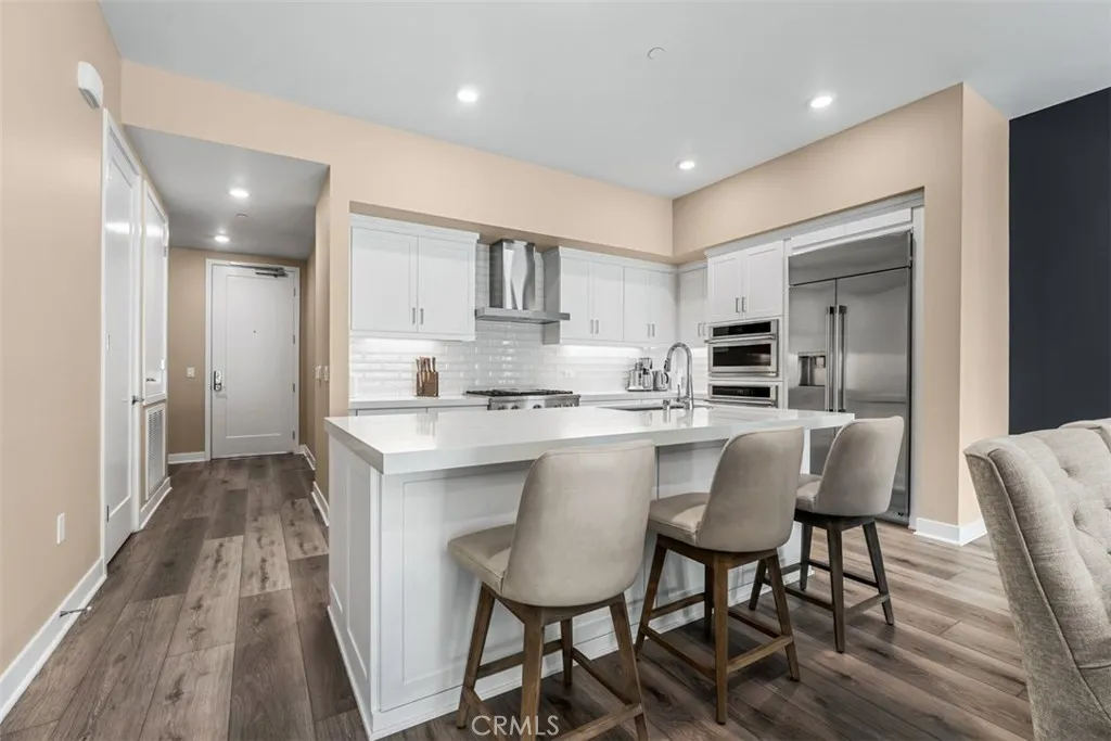 Welcome to this turnkey fully furnished upgraded and spacious 2 bedroom, 3 bathroom with an additional room for an office or den on the fifth floor boasting an abundance of natural light. This stunning unit offers exceptional convenience being close to the elevator, trash shoot, and parking with luxury amenities including an additional gym and conference room in the building making it one of the most desirable units in the community. The bright, open floor plan allows living and dining areas to flow seamlessly into an extended outdoor deck perfect for entertaining guests or enjoying quiet evenings outdoors. The chef-inspired kitchen is complete with quartz countertops, tile backsplash, top-of-the-line appliances, and a large island ideal for intimate dining and gatherings. The spacious primary suite features a spa-like en-suite bathroom with dual vanities, a large walk-in shower, soaking tub, and a generous walk-in closet. The large secondary bedroom also includes its own bathroom for ultimate privacy and flexibility while a stylish third bathroom adds extra convenience for guests. The home boasts a laundry closet with large capacity washer and dryer, luxury vinyl flooring, expansive windows, recessed lighting, surround sound, automated custom window treatments, built in televisions, and high-end finishes throughout. Enjoy resort-style living with access to premium amenities including two state-of-the-art gyms, two pools, spa, pickleball court, basketball court, an 8,000-square-foot clubhouse, luxury BBQ grills, flat-screen TVs, fireplaces, yoga studio, outdoor workspaces,