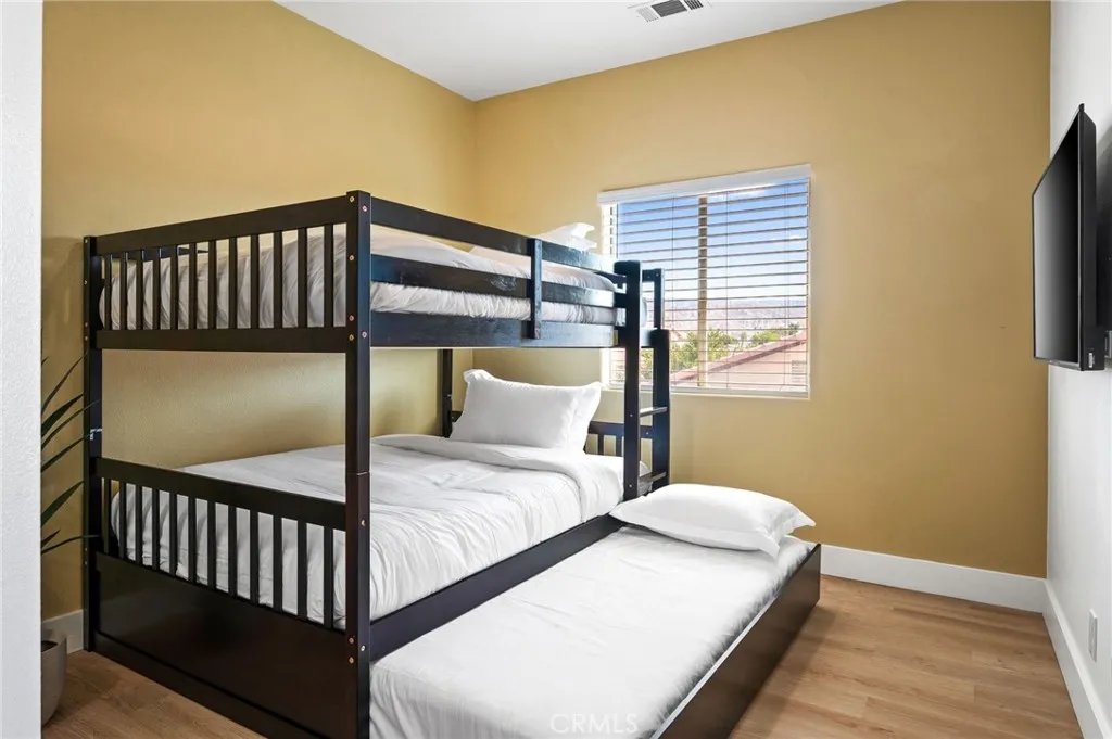 Welcome to Desert Skyline a fully renovated, turnkey luxury home designed for high-performing short-term rental success or effortless resort-style living. This modern desert retreat accommodates up to 18 guests with 6 bedrooms (including bonus room) and 4.5 baths, offering the perfect blend of comfort, functionality, and entertainment. Located in a quiet Indio neighborhood just 25 minutes from downtown Palm Springs, Desert Skyline delivers an exceptional opportunity for investors and lifestyle buyers alike. Designed with vacation rentals in mind, the home features open-concept living with stylish finishes, a fully stocked kitchen, elegant dining area, and multiple lounging spaces. Each bedroom is thoughtfully appointed with smart TVs, ceiling fans, quality furnishings, and luxe bedding. The spacious primary suite includes a king bed, work space, and ensuite bath with soaking tub. Flexible sleeping arrangements including king, queen, bunk, and double-queen rooms make this home ideal for large groups, families, and festival guests. Step outside to your private resort oasis, where a brand-new smart-controlled pool and spa create the centerpiece for outdoor entertainment. Enjoy five in-pool bar stools, a 10-person spa, sunken fire pit, tanning shelf, and ample lounging areas with in-pool chaises and deck seating. A large shaded pergola extends the living space with a 75" smart TV, pool table, shuffleboard, ceiling fans, and conversation seating. The outdoor kitchen features a natural-gas Blaze grill, wet bar, and dining for ten perfect for al fresco gatherings under the des