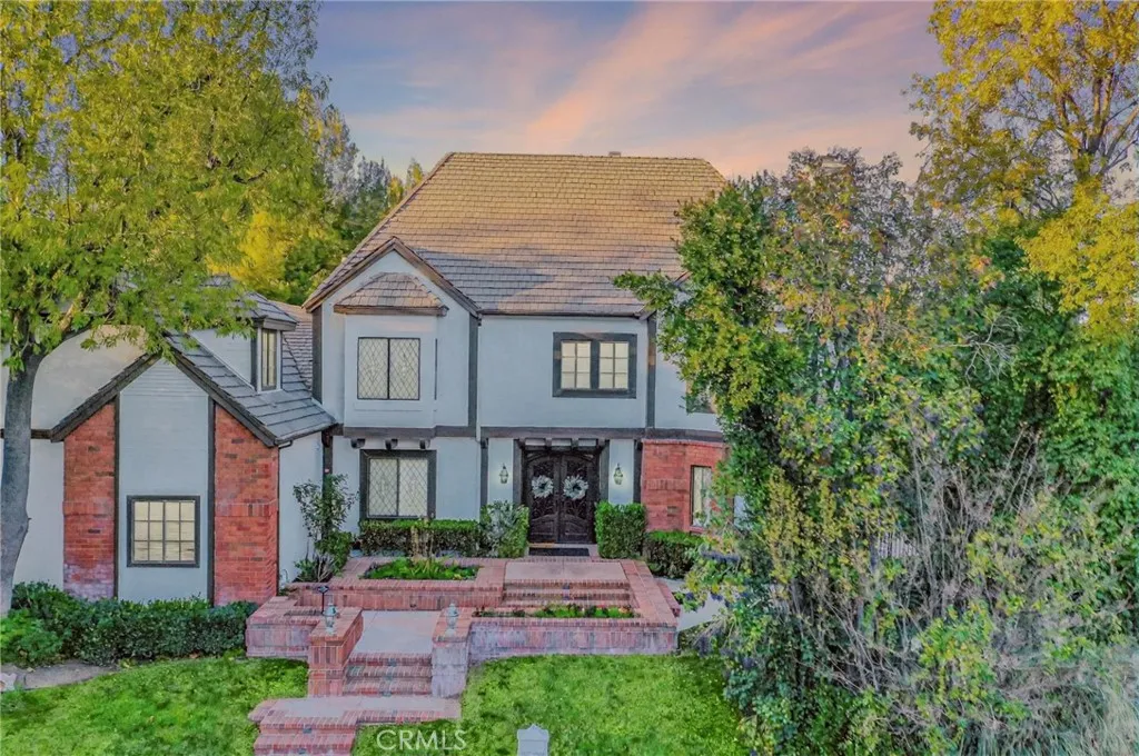 Welcome to your dream home located in the high desired Valencia Vista Hills Community, this custom refreshed Tudor Style 5,300 sqft home offers a perfect blend of luxury, comfort, and functionality. Experience the timeless charm of this home, featuring exquisite original woodwork and hardwood floors throughout. Embrace the perfect blend of historic elegance and modern comfort. A formal entry way sets an elegant tone with beautiful high ceilings, and a spacious open layout, easily accessible for those with ADA needs. The heart of the home is the expansive kitchen with large windows that allow natural light to highlight the space, while seamlessly flowing to the family room which is impressed with coffered ceilings, adding elegance for gatherings and celebrations. The adjacent dining room and living room features one of this homes eye-catching gas fireplaces, offering warmth and livability. The home additionally features two convenient downstairs bedrooms each with fully remodeled bathrooms, leading to thoughtfully designed living spaces flexible for office space or guest rooms, enhanced by fresh interior paint, and wood flooring throughout, along with another four generous upstairs bedrooms and a versatile seventh bonus room/theater room. The private primary suite is a true sanctuary with its own fireplace, two walk-in closets and a spa-inspired bathtub, a separate shower and access to outdoor deck for a morning coffee or stargazing at nights. As an intimate extension of the living space, there is an additional wing suite with its own private stairway entrance, direct access