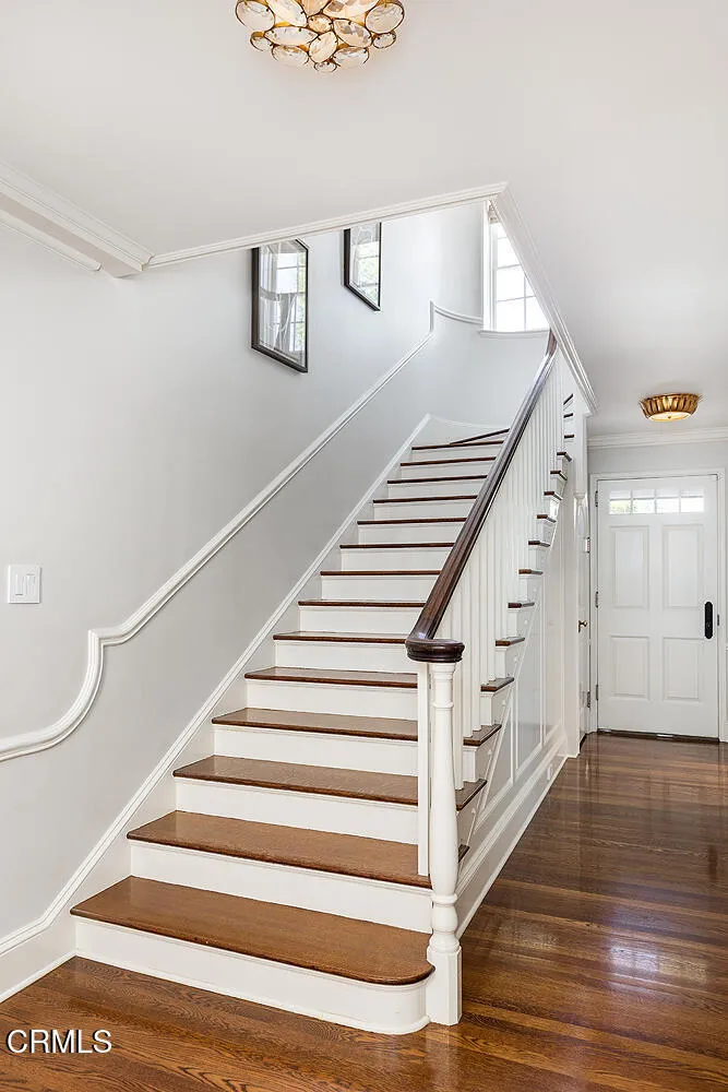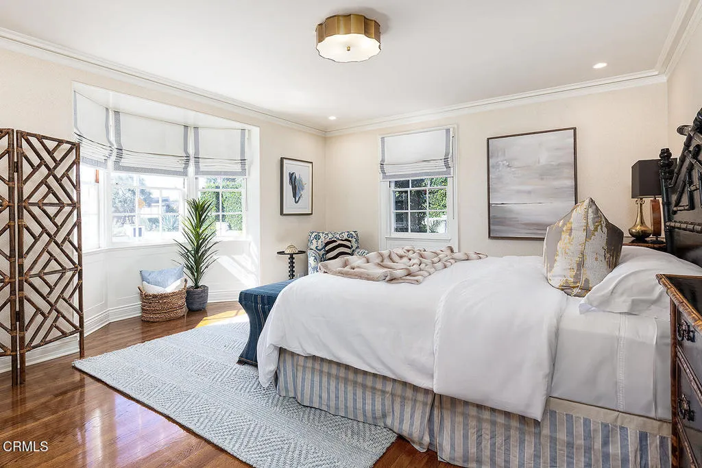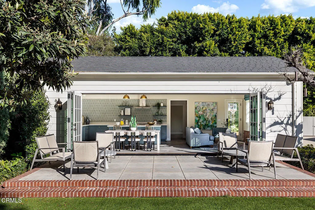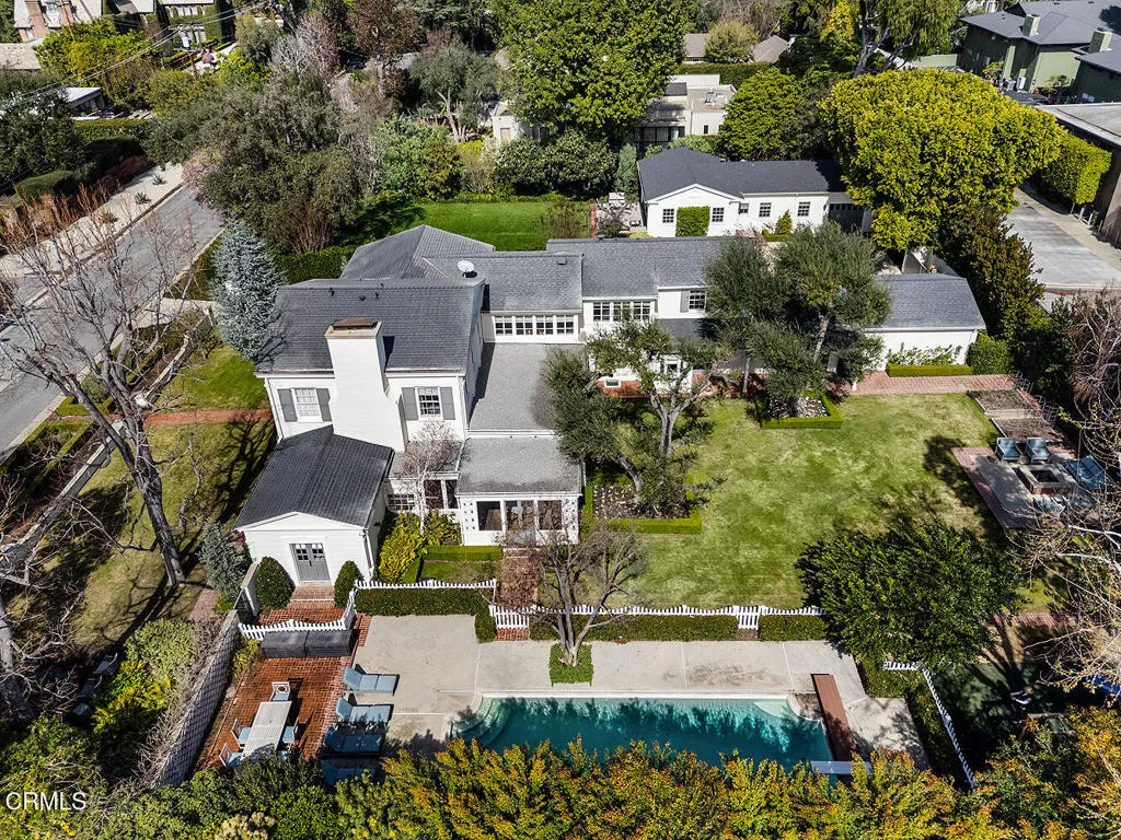 Majestically poised in Pasadena's sought-after Arroyo neighborhood, the Charles E. Davis House is a distinguished Colonial Revival estate designed by renowned architect Roland E. Coate and carrying the storied provenance of a past family connection to famed chef Julia Child through her father, John McWilliams, the home's second owner. Thoughtfully remodeled in 2018 for today's lifestyle and elevated in 2020 by a stunning guest house, this property sits on three-quarters acre of manicured grounds and marries timeless architectural pedigree with an effortless indoor-outdoor lifestyle. The stately facade reveals Coate's hallmark of grand proportions and livable elegance. A formal entry beckons guests into a gracious living room, a handsome library, an inviting dining room, balanced by a comfortable family room with movie projector and screen, and an adjoining sunroom, where boundaries between house and the lush gardens dissolve. At the heart of daily life is a charming chef's kitchen, breakfast area and back kitchen, while two main-level guest suites, powder rooms and laundry room add welcomed practicality. Gracing the second level, the sumptuous primary suite and four additional BRs capture serene treetop views, served by three beautifully-remodeled bathrooms, laundry room and two staircases, creating restful and private quarters. Outside, the resort-like grounds evoke magic, with numerous entertaining terraces, fire pit, salt-water pool, play area, vegetable garden, chicken coop, music speakers and sweeping lawns that turn gatherings into occasions. The exceptional accessory