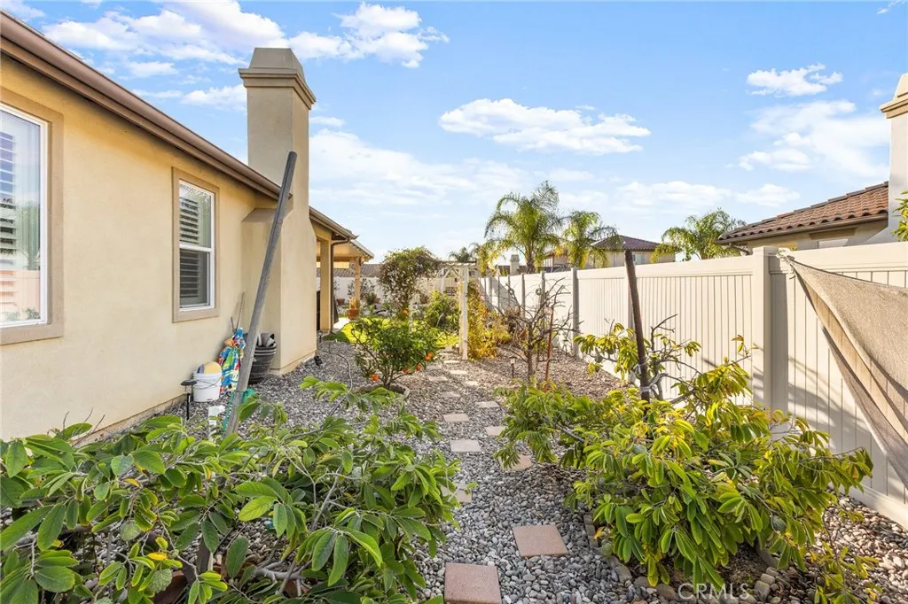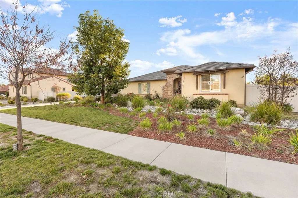 Welcome to this beautifully appointed custom single-story home offering 4 bedrooms and 3.5 bathrooms on a spacious 1/3-acre lot in a well Established neighborhood of Redlands. Designed with both comfort and style in mind, this residence showcases tasteful modern finishes and warm neutral tones throughout. Step inside to find rich hardwood flooring, plantation shutters on every window, a whole-home water softener system, and an energy-efficient 24-panel PAID solar system. The open-concept layout is ideal for entertaining, centered around a grand kitchen featuring abundant prep space, generous cabinetry, and a walk-in pantry. The thoughtfully designed split-bedroom floor plan offers privacy and flexibility for family living, while an additional family room/flex space on the north end of the home provides the perfect area for a media room, office, or playroom. Outdoors, unwind in the serene backyard oasis complete with an alumawood patio cover, stamped concrete, Vinyl fencing with custom iron gates and a charming river-rock stream feature spanning the length of the yard. Both side yards are fully irrigated and home to thriving fruit groves including avocado, apple, grapefruit, tangerine, plum, guava, dragon fruit, Chinese apple, blood orange, cherimoya, and longan all producing. Additional highlights include a 3-car garage, convenient indoor laundry room and water softener system. Modern comfort, energy efficiency, and resort-style outdoor living all on one level with No HOA or Mello Roos! Don't Miss this one!
