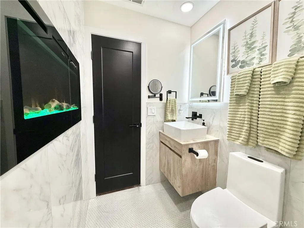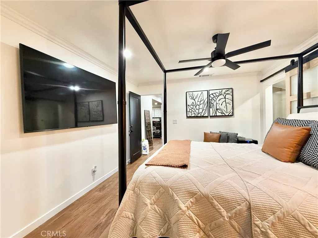 Fully renovated in 2026, this modern 4-bedroom, 4-bathroom home blends contemporary design with warm architectural character. The bright interior features crisp white tones, striking REAL brick accent walls, and multiple sliding doors that create excellent natural light and seamless indoor-outdoor flow. A brand-new roof will be installed prior to the close of escrow. The remodeled bathrooms feature clean modern finishes, while the main living area bathroom showcases a rare built-in wall fireplace and stylish glass shower enclosure that creates a spa-like atmosphere. The former garage has been professionally converted into additional living space, offering a separate living room area and a large bedroom with two spacious closets and upgraded lighting. This flexible layout is ideal for multi-generational living, guests, or additional living space. The backyard is designed for entertaining with a built-in outdoor bar, outdoor kitchen, fireplace, and a spacious entertainment area perfect for gatherings. Two additional exterior bathrooms with sink and toilet add convenience for outdoor events. A detached storage shed with a durable shingle roof provides additional storage. Both the front and backyard are fully concreted, maximizing usable space and providing exceptional parking capacity for approximately 89 vehicles. NEW ROOF TO BE INSTALLED BY SELLER BEFORE CLOSE OF ESCROW/4TH BEDROOM IS A CONVERTED GARAGE/RECENTLY PRICE REDUCED!/2 OUT DOOR BATHROOMS!/SELLER MAY CONVERT GARAGE BACK INTO A GARAGE AT BUYERS REQUEST.