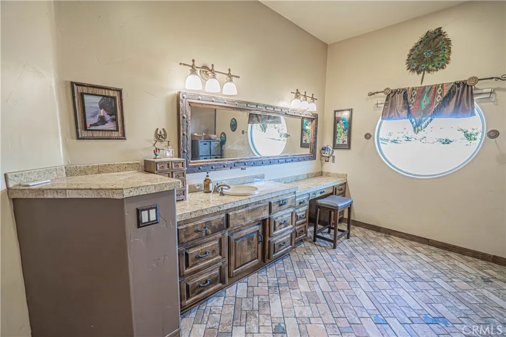 Rare opportunity to own one of Actons most desirable fully usable equestrian estates, offering 9.5 acres of private horse property with a custom single-story Spanish Hacienda ranch home, complete equestrian facilities, public water service, and an end-of-cul-de-sac location close to the center of town yet just minutes from Santa Clarita. This exceptional Acton horse property offers over 4,100 square feet, making it one of the larger single-story ranch homes available in Actons equestrian community, with 4 bedrooms plus a loft, 3 total bathrooms including a Jack and Jill bath, and soaring 20-foot ceilings in the grand entry and living room with 10-foot ceilings throughout. Rustic Western ranch character blends with timeless Hacienda design featuring stained concrete floors, slate and wood flooring with no carpet, stacked rock accents, and artisan detailing throughout. The chefs kitchen showcases alder wood cabinetry, granite countertops, stainless Thermador refrigerator, oven, and stovetop with indoor grill, along with a butlers pantry and wine fridge ideal for entertaining. Living spaces are centered around a dramatic stacked-stone double-sided natural gas fireplace plus an additional fireplace creating warm and inviting gathering areas. The private primary suite includes a spa-style bath with jacuzzi soaking tub, rainbath steam shower, and dual vanities. Designed for comfort and efficiency, the home includes three HVAC systems, two tankless water heaters, ceiling fans in every room, a large laundry and mud room, and oversized extra-deep garages with four-car capacity. Eque