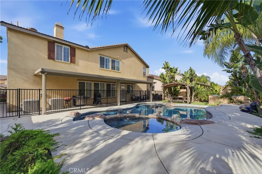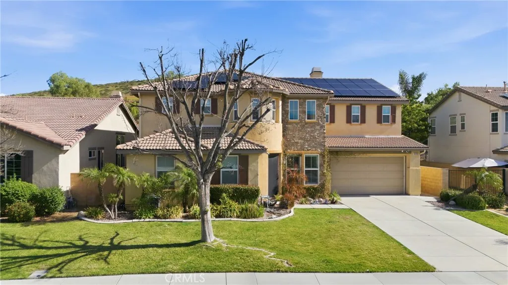 Welcome to 31732 Brentworth St in Menifee, a spacious and well-designed two-story home offering approximately 4,017 square feet of living space and a functional layout ideal for modern living. This residence features 5 bedrooms plus a large loft and 4.5 bathrooms, including a convenient downstairs bedroom with its own private bathroom, perfect for guests or multigenerational living. Upstairs, the expansive primary suite offers a comfortable retreat with his and her walk-in closets and a large en-suite bathroom with separate vanities. The additional bedrooms and versatile loft provide plenty of space for relaxation, work, or play. The backyard is designed for enjoying the Southern California lifestyle with a gated swimming pool and the added benefit of no rear neighbors, creating a sense of privacy and open space. Additional highlights include a tandem garage with room for three vehicles, dual HVAC systems for efficient climate control, a solar system with Tesla Powerwall battery storage system, and a dedicated dog kennel area. Located in a desirable Menifee neighborhood close to schools, parks, shopping, and dining, this home offers space, comfort, and energy efficiency all in one place. Schedule a private showing and experience everything this exceptional property has to offer!