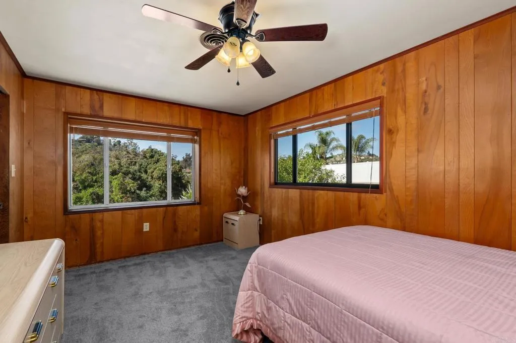 This beauty in Eucalyptus Hills is set on 1.75 acres with gorgeous views to the east offering peaceful living at its finest. The thoughtfully upgraded 4-bedroom, 3.5-bath single-story home features two garages, including an oversized 950ESF garage perfect for projects. Inside youll find a remodeled kitchen and updated bathrooms, two primary suites, one with private entry, a cozy fireplace with a living room filled with windows (dual pane throughout), a convenient mudroom with laundry, and a huge bonus room. The fully gated and fenced property includes 100 mature fruit trees including avocados, oranges, lemons and limes making it the ideal setting for a farm-to-table lifestyle! The home also includes a Generac generator for added reliability and peace of mind. With all this goodness, there is still plenty of room to expand your vision - more gardens, outdoor entertaining space or other future possibilities.