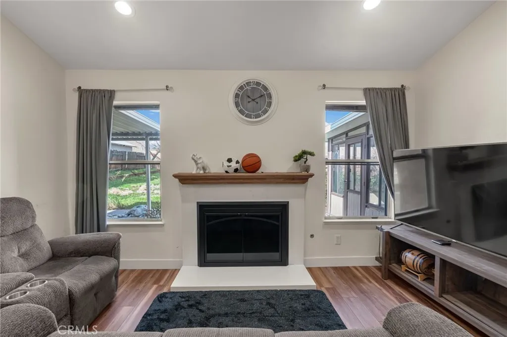 Welcome to this beautifully upgraded single-story home! This beauty offers 4 bedrooms and 2 full bathrooms, thoughtfully updated from floor to ceiling. Step through the new front door into a bright and spacious open floor plan featuring vaulted ceilings and a gorgeous fireplace that anchors the inviting family room. Flooring flows through the primary bedroom and main living areas. The stunning kitchen is sure to impress with quartz countertops, new antique white cabinetry, a single-bowl stainless steel under-mount sink, and a unique faucet that lights up when the water is turned on. High-quality sinks and faucets, along with newer toilets. Enjoy extra living space in the 250 sq. ft. enclosed sunroom, perfect for relaxing or entertaining. Situated on a quiet street, this property offers a commuter-friendly location close to shopping, parks, hiking trails and schools Turn-key and move-in ready dont miss this incredible opportunity!