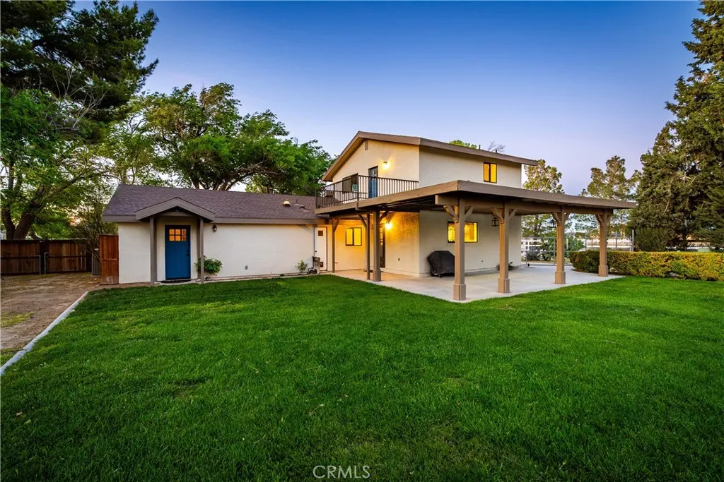 ***LIVE BEAUTIFULLY*** Two-Story Ranch-Style Home w/ Fully Paid Solar, A Detached Workshop, RV Access, And Situated On 2.5 Acres Of Usable Land! Exceptional curb appeal welcomes you with white ranch-style fencing, mature trees, and a large lush grassy front yard. Step inside to a spacious layout featuring a cozy family room with a charming brick fireplace and a formal dining area perfect for entertaining. The home has been thoughtfully upgraded with newer roofing, fascia, windows, doors, and exterior paint, offering both style and peace of mind. The kitchen offers ample cabinetry, tile countertops, stainless steel appliances, and a functional layout with views of the backyard. Downstairs includes two bedrooms and a half bath, as well as one bedroom with its own private bathroom and direct outdoor access, ideal for guests or multi-generational living. The entire top floor is dedicated to the expansive primary suite, creating a true private retreat. Enjoy a walk-in closet, a large vanity with abundant counter space, a walk-in shower, and direct access to a spacious private balcony. The deck is perfect for relaxing, taking in sunset views, and enjoying the peaceful surroundings. The backyard features a covered patio, a large grassy area, and endless possibilities across the full 2.5 acres. The property also includes a detached workshop, a storage shed, and plenty of space for RVs or future expansion. Fully paid solar, a private upstairs primary retreat with its own deck, a detached workshop, RV access, and expansive usable acreage make this property a rare opportunity!