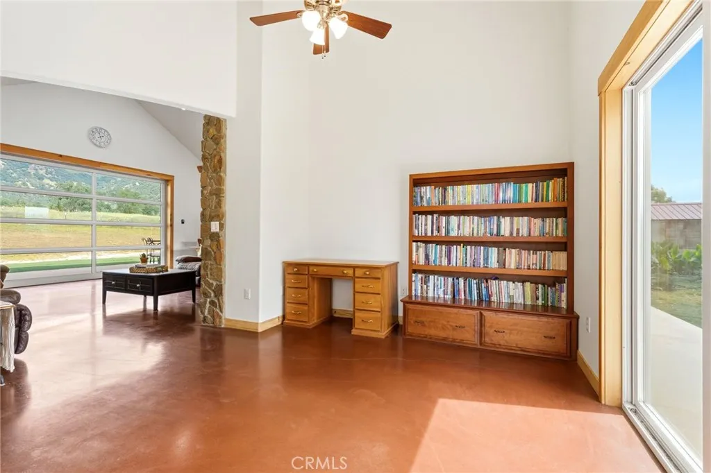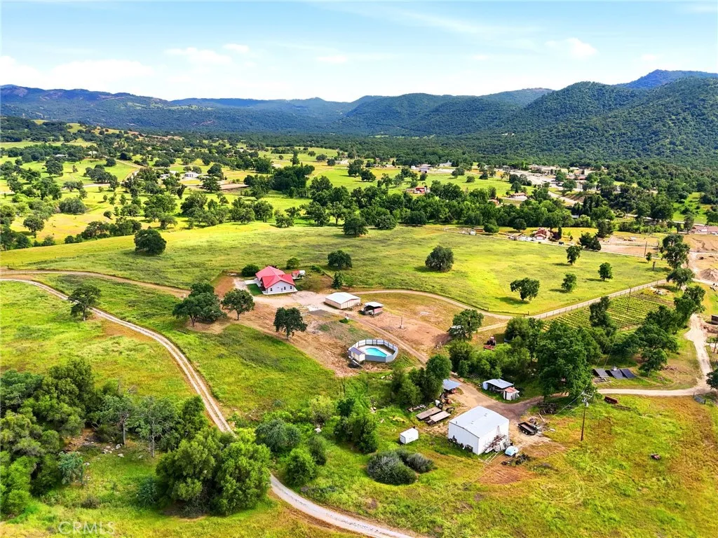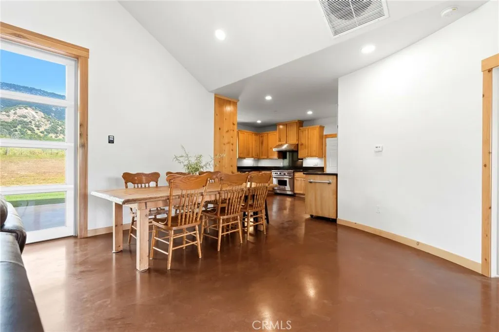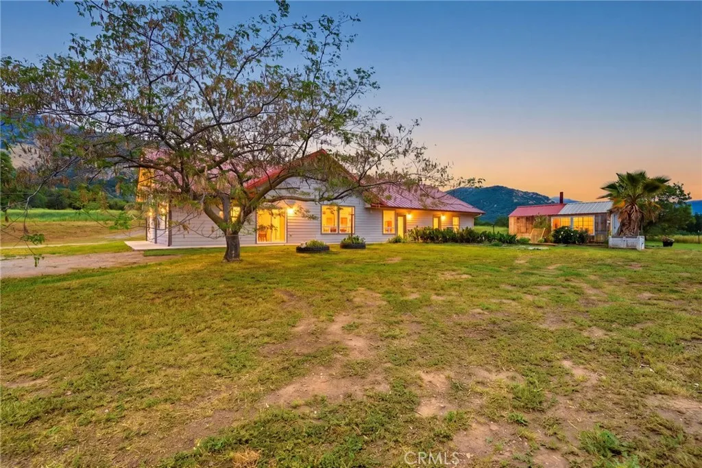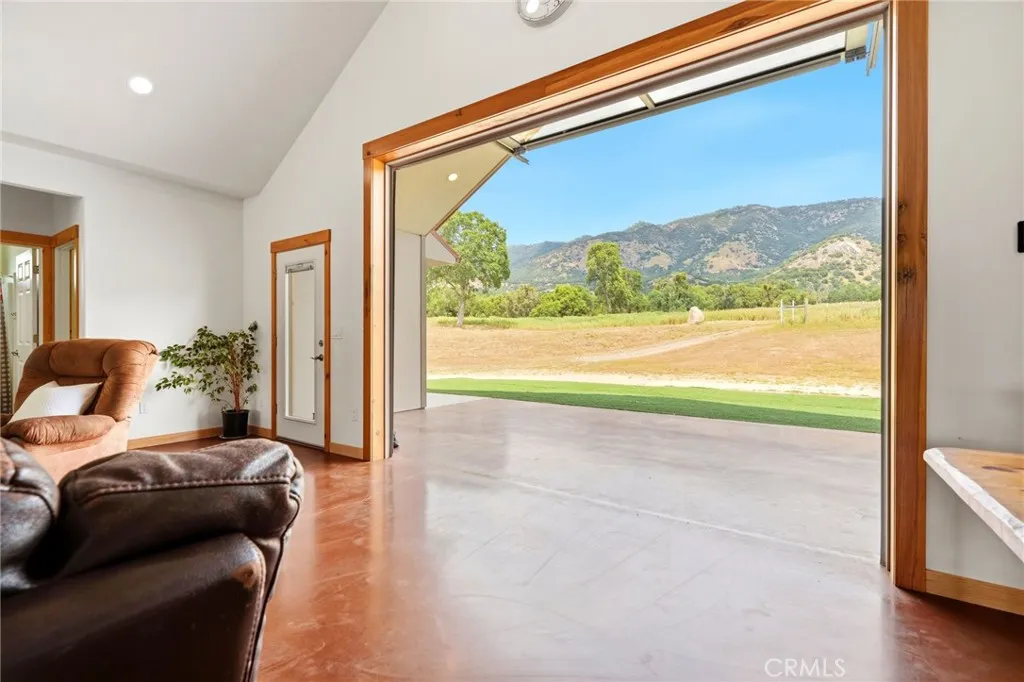 Nicely appointed on 20 private, usable acres with big open skies and expansive McKenzie Ridge views, this custom 2,100 sq. ft. estate balances high-end luxury with rural utility. Ideally located minutes from Hwy 180, Dunlap School, and the post office, the property features dual access points and is a short drive to Kings Canyon or a straight shot to Valley shopping. The home is built for longevity with a premium standing seam metal roof and fire-hardened exterior. Inside, vaulted ceilings and polished concrete floors meet local sugar pine trim. The living area features a stone fireplace and an operable glass roll-up door that opens to a covered patio plumbed for an outdoor kitchen. The chef's kitchen boasts a 36-inch Wolf range, dual dishwashers, and custom cabinetry. Designed for accessibility, all bathrooms including the granite-clad primary suite feature zero-step, floor-level transitions. Modern comforts include 9' ceilings, a dedicated library, a media room, and hydronic heated floors powered by a greenhouse wood stove with propane backup. The property offers high potential for agricultural and equestrian use, featuring 12-14 acres of newly fenced pasture sowed in oats, cleared of rock over the last three years, and framed by majestic, mature oak trees. The infrastructure is professional-grade: a massive 40x84 footprint including a 1,300+ sq. ft. sheetrocked garage with an enclosed bonus room, a tall 30x40 shop, a 36x36 stable barn, and a horse walker. Supported by a 100 GPM well (per log), the deer and rabbit-proof berry field (blueberries, blackberries, strawberries