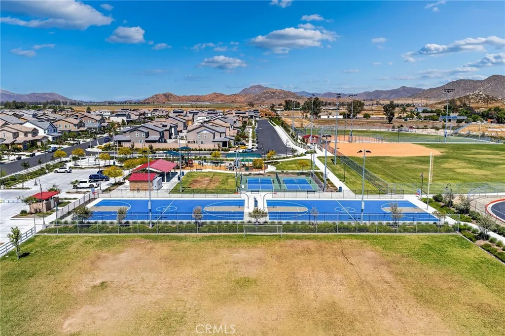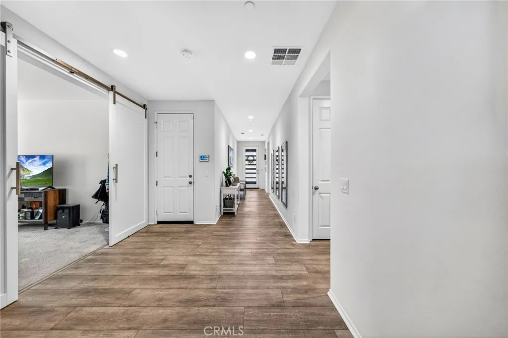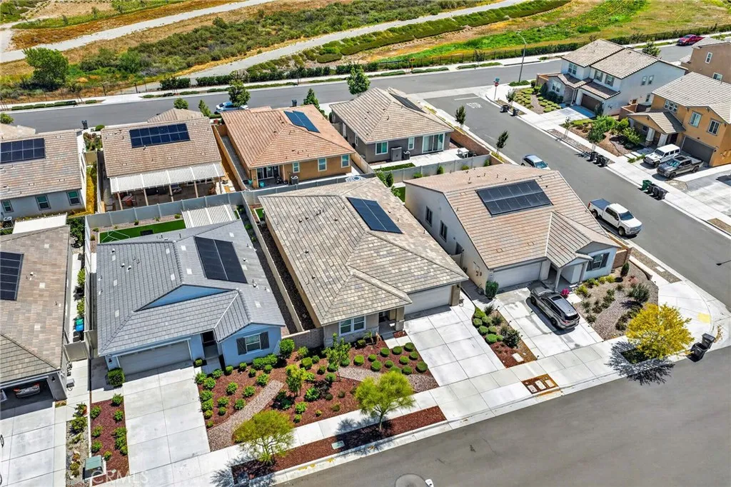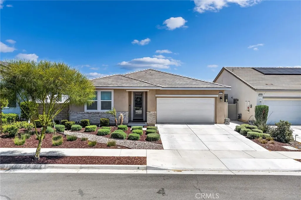 Stunning SINGLE STORY HOME! Beautiful, charming, and well-maintained Menifee home featuring 3 bedrooms, 2 full baths, plus a spacious office/den. An open-concept layout with plenty of natural light throughout the home. A wide and open hallway welcomes you as you step inside the home. The great room offers a refreshing and seamless living room space perfect for lounging or entertaining guests. The kitchen and dining area is equipped with an updated and almost new appliances, HUGE island, quartz countertops, pendant lighting, timeless backsplash, and plenty of cabinet space. The master suite offers a spacious walk-in closet and t's own private bath with an added barn door for privacy and style. The other 2 bedrooms are well-sized with ample closet space. There is an extra that can used as an office or can easily be converted to a 4th bedroom. This fully upgraded home SOLAR comes with stylish finishes throughout, Level 2 EV CHARGER, epoxy garage flooring, storage racks, and not to mention a fully landscape and low maintenance backyard perfect for entertaining. Ideal location as it is close to the freeway, commercial centers, and walking distance to High School and Elementary School. Don't miss your chance to own this exceptional home now!