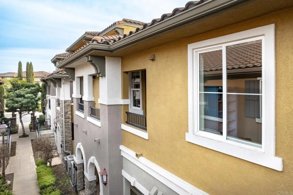 Welcome to 36 Via Sovana, a rare corner-unit gem in the highly sought-after Trevisio community of Santee. This bright, upstairs one-level home offers a spacious and functional floor plan featuring two bedrooms, two full baths, a generous living room, dining area, and an open kitchen with a full-size interior laundry room. The thoughtfully designed layout flows seamlessly from the living and dining spaces to the kitchen, creating an ideal setting for both daily living and entertaining. Additional highlights include plantation shutters, granite countertops, recessed lighting, panel interior doors, a GE appliance package, and a new disposal. Fire sprinklers add peace of mind, while the private covered balcony with extra storage provides a perfect spot to relax and enjoy the natural light that floods the home. This desirable corner location offers enhanced privacy and features a garage plus a dedicated carport. Residents of Trevisio enjoy access to the community poolperfect for sunny San Diego days. Conveniently located near shopping, dining, parks, top-rated schools, and 52 and 125 freeways, this home provides effortless connectivity while retaining a peaceful neighborhood atmosphere. Outdoor enthusiasts will love being just minutes from Mission Trails Regional Park (walkable), Big Rock Park, Cowles Mountain, Santee Lakes, Grossmont College, and the Kumeyaay Lane Campground, with miles of hiking, biking, and nature trails nearby. Best of all, youre only about 14 miles from some of San Diegos most popular beaches. Dont miss this exceptional opportunity to own in one of Santees