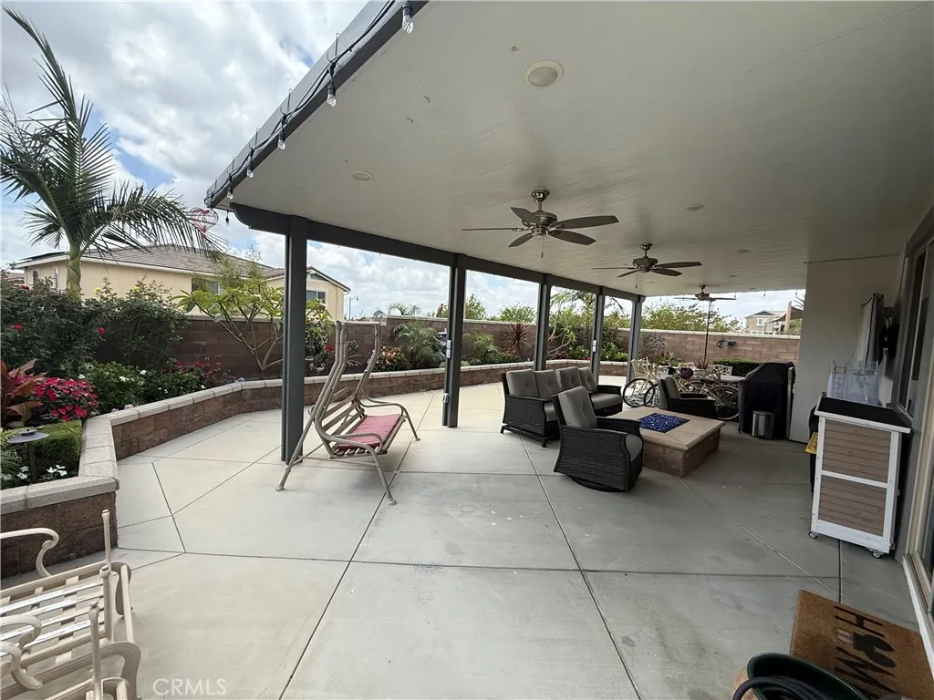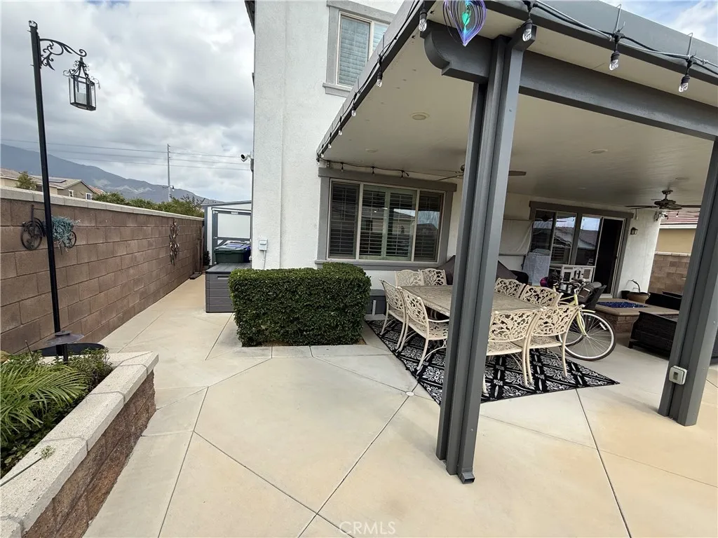 Located in the prestigious North Fontana Gabion Rancho community, this exquisite end-unit residence showcases exceptional curb appeal with meticulously landscaped front and rear grounds. Designed with both elegance and comfort in mind, the interior features a sophisticated open-concept layout centered around a chef-inspired kitchen complete with granite countertops, stainless steel appliances, and an oversized center island ideal for entertaining and casual dining. The main level offers a private bedroom and full bath, perfectly suited for guests or multi-generational living. Upstairs, a spacious loft provides a refined secondary living area, while the lavish primary suite serves as a private retreat featuring a spa-inspired en-suite bath with a soaking tub, separate glass-enclosed shower, and expansive walk-in closet. Two additional generously sized bedrooms, a full bath, and a conveniently located upstairs laundry room complete the second floor. Thoughtfully appointed with premium enhancements, this home includes six wired 4K color security cameras with Lorex app access, a custom covered patio with electrical wiring and ceiling fans, a built-in gas fire pit, and a Tuff Shed for additional storage. Enjoy year-round Trimlights controlled directly from your smartphone, a garage equipped with MyQ smart access, and leased solar panels with pigeon protection. The current owner enjoys an average solar payment of only $110 per month. Take in breathtaking mountain views and indulge in resort-style community amenities, including three sparkling swimming pools, playgrounds, basketba