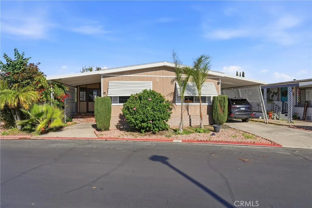 CORNER LOT** NO ONE IN FRONT OF YOU... Welcome to this charming 2-bedroom, 2-bathroom manufactured home located in the sought-after 55+ gated community of Rancho Ontario. Featuring approximately 1,440 sq ft of living space, this home offers an open floor plan with a spacious living room and family room, a comfortable main suite with large mirrored closets, and a full bathroom with a garden tub and stand-up shower. The guest bedroom is conveniently situated near the laundry area. FACING THE PARK! Residents enjoy a resort-style lifestyle with resort amenities such as a heated pool and spa open year-round, clubhouse with billiards, card/game rooms and fitness center, pickleball and bocce ball courts, and two dog parks for pets. Rancho Ontario also provides a vibrant social calendar and plenty of activities for active adult living. Perfectly situated in a central SoCal location with easy access to freeways, shopping, and dining. Centrally located close to Victoria Gardens, Ontario Mills and Ontario International Airport. This home includes central air and heating, ample carport parking, and community comforts that make it an ideal place to call home. Don't miss your chance to own this one!