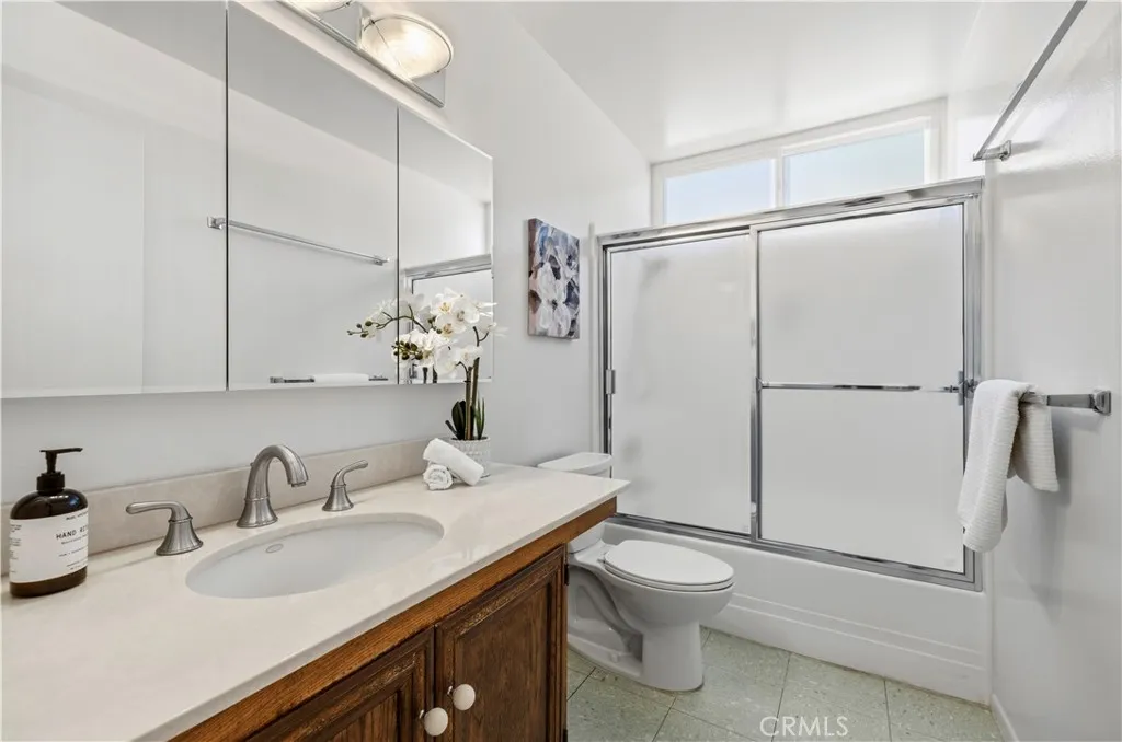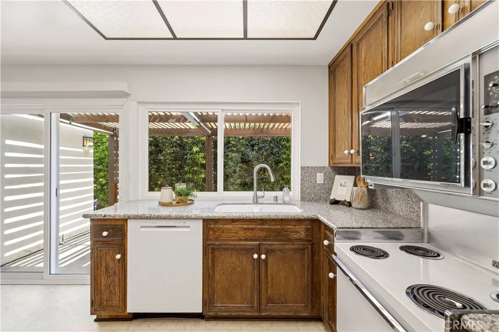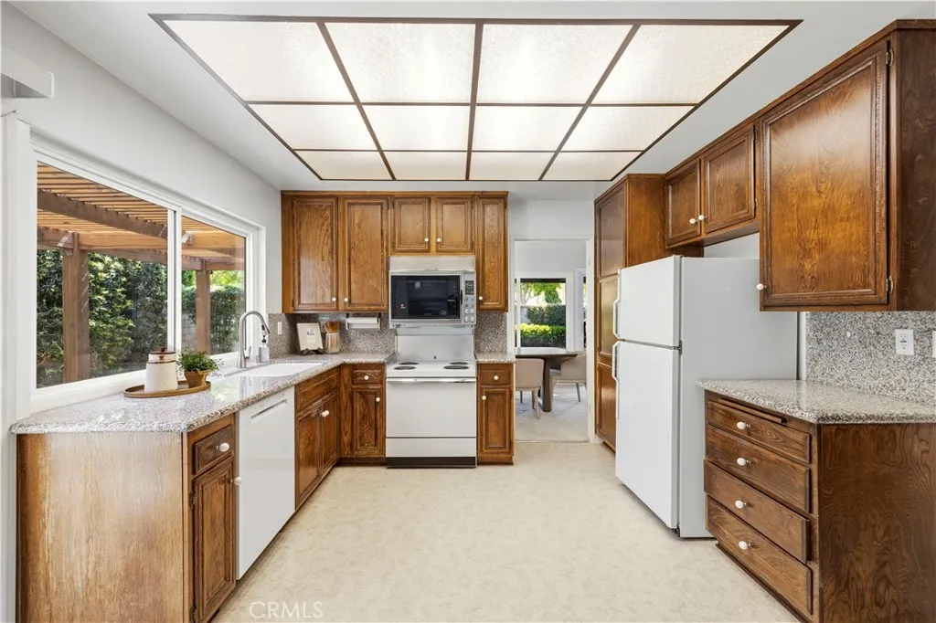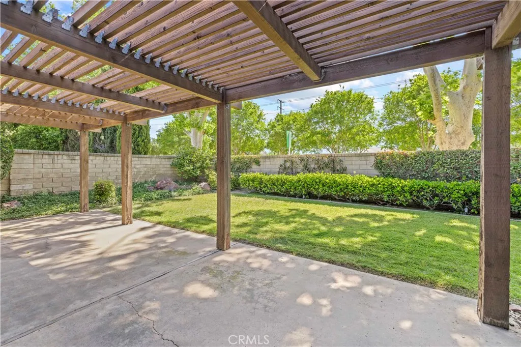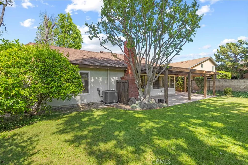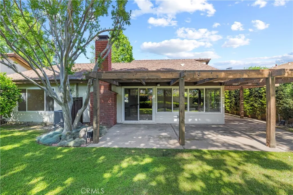 This charming single-story home in the established Old Orchard community of Valencia offers an ideal opportunity for a first-time buyer or someone looking to downsize. From the moment you arrive, the solid wood double doors provide a warm welcome, leading into a tile entryway characterized by high ceilings and an abundance of natural light. The functional open floor plan centers around a cozy living room fireplace and flows easily into the dining area and kitchen, creating a practical space for families. One of the standout features of this property is the seamless connection to the outdoors. A large, private covered patio sits just off the kitchen and living area, overlooking a spacious backyard with plenty of grass and mature landscaping. Inside, the primary bedroom is generously sized and includes a private bathroom with a walk-in shower, while the secondary bedrooms are well-served by a full hallway bathroom with a tub-and-shower combination. The home has been thoughtfully maintained with several practical updates, including a newer HVAC system, water heater, and energy-efficient dual-pane windows. Located in a friendly neighborhood near local schools, shopping, and entertainment, the property offers easy freeway access for commuters. With the added benefit of no Mello-Roos fees, this residence is a wonderful entry point into a sought-after area of Valencia.