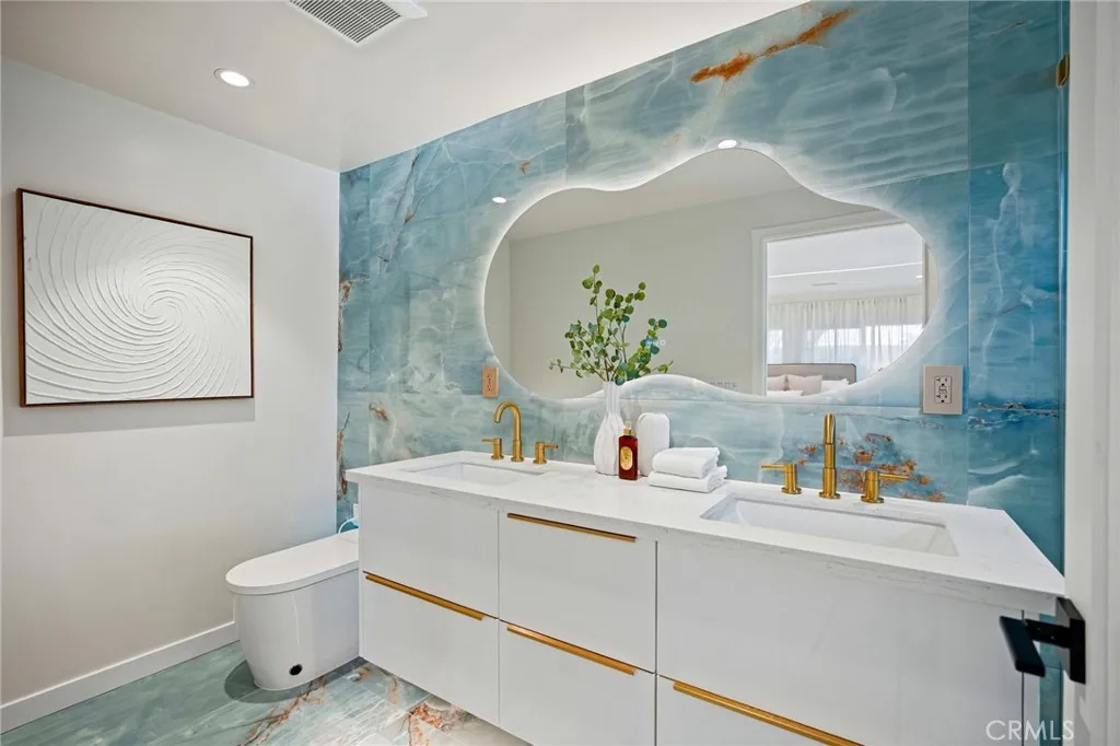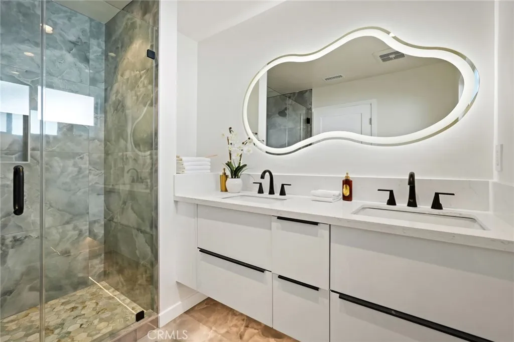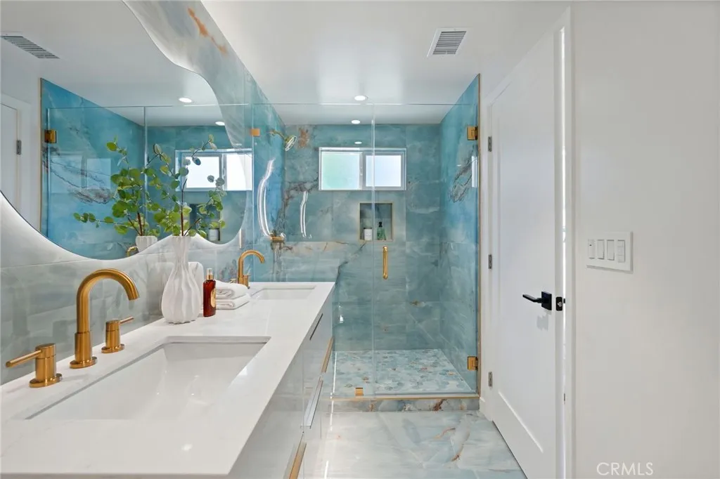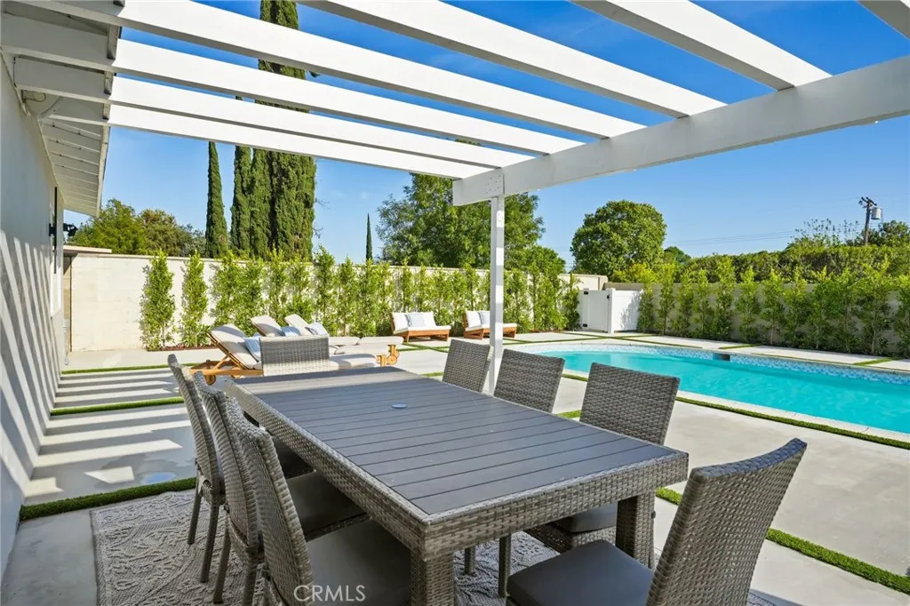 Welcome to this gorgeously remodeled pool home nestled in a highly desirable West Hills neighborhood. Thoughtfully upgraded throughout, this stunning residence offers the perfect blend of modern design, comfort, and functionality. Step inside to an open-concept floor plan filled with natural light, smooth walls and ceilings, wide-plank flooring, and elegant recessed lighting. The designer kitchen serves as the heart of the home, featuring custom cabinetry, quartz countertops, a built-in gas cooktop with pot filler, and sleek white glass smart appliances. The home offers a versatile 5-bedroom layout (4 bedrooms plus a dedicated office) and 4 full bathrooms, providing flexibility for modern living, working from home, and hosting guests. Multiple en-suite bedroomsa rare and highly desirable featureadd comfort and privacy throughout the home. Each bathroom has been beautifully remodeled with floating vanities, frameless glass showers, designer tile work, and smart toilets. Additional upgrades include a new roof, dual-pane windows, updated electrical and plumbing systems, and an enhanced HVAC system featuring a new furnace and upgraded ducting. Step outside to your private backyard oasis, complete with a sparkling swimming pool, contemporary concrete and turf landscaping, and multiple lounging and entertaining areasperfect for enjoying Southern California living year-round. This exceptional property combines style, quality, and thoughtful upgrades in one of West Hills most sought-after locations.