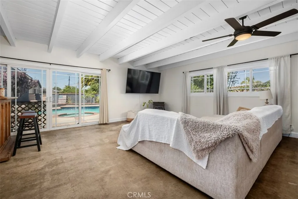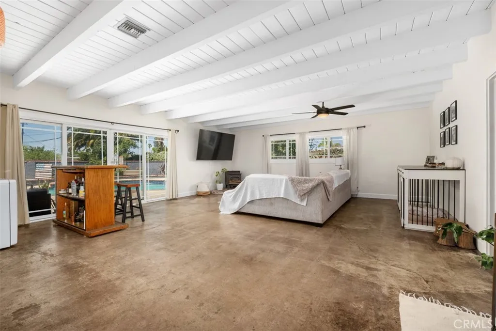 Charming single-story ranch style pool home on oversized lot in quiet cul-de-sac. This home has endless potential, featuring 4 bed 3 bath, double RV parking with two garages totaling 6 plus garage parking. The large garage is more like a barn with its size and 4 plus available parking inside. Large living room area with concrete flooring overlooking the deck and pool area. Home is centrally located with easy walking distance to dining and shopping. This home is very unique and extremely desirable. Conveniently located near Chapman University, Disneyland, Knott's Berry Farm, Anaheim Convention Center and Old Towne Orange.