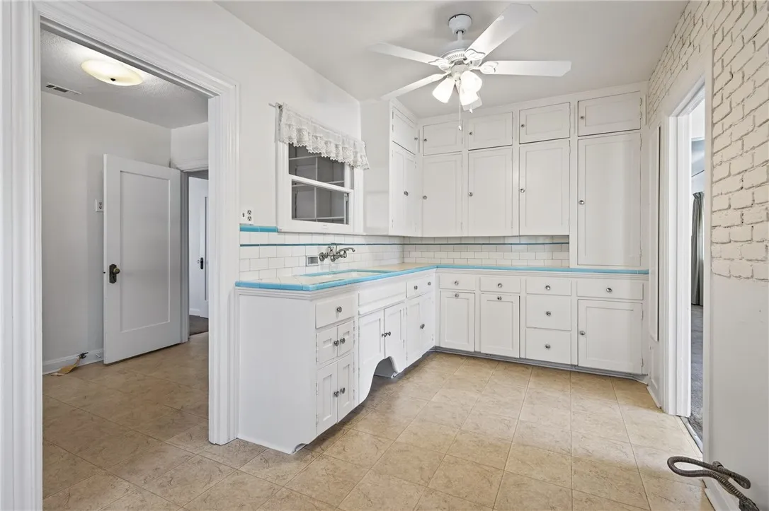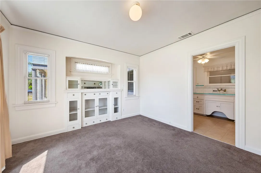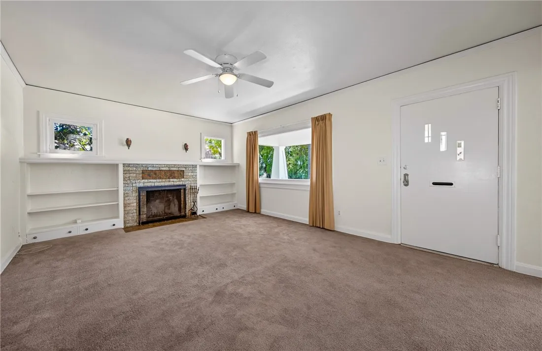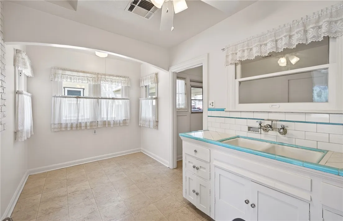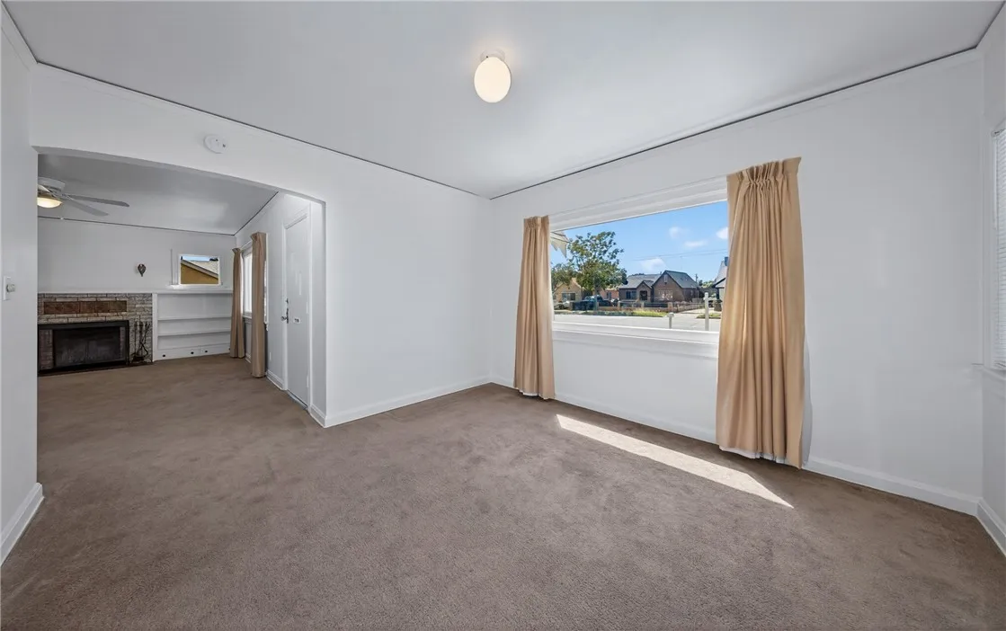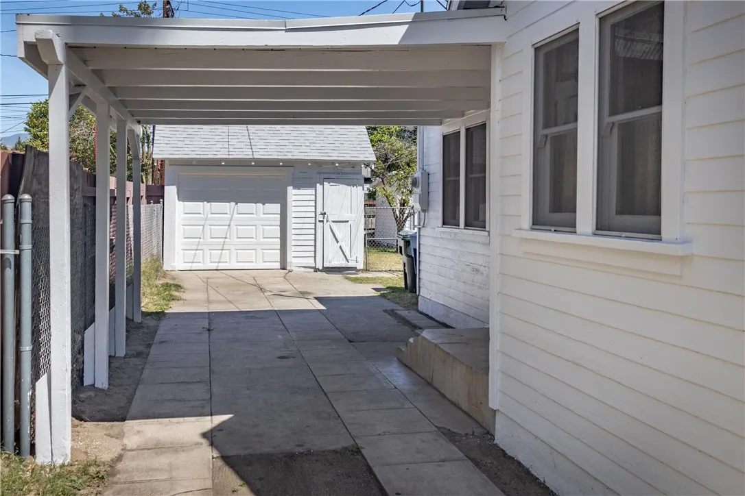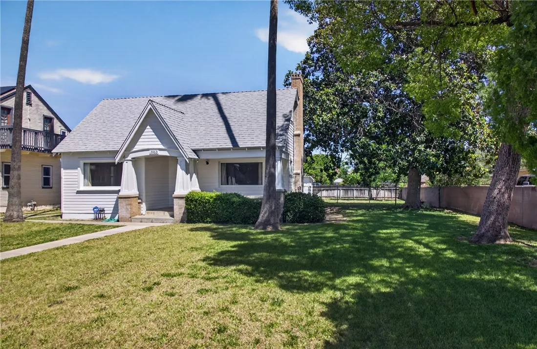 Step into timeless charm with this picturesque vintage home, featuring 2 bedrooms and 1 bath, and undeniable curb appeal. A spacious formal dining room showcases a beautiful built-in hutch, perfect for both everyday living and entertaining. The large living room offers a cozy fireplace, creating a warm and inviting atmosphere. The bright, airy kitchen is full of character with vintage tile and a charming breakfast nook. The bathroom continues the classic aesthetic with vintage tile and a built-in vanity. An indoor utility room adds convenience. Relax on the covered front porch and enjoy the privacy of a home set back from the street. The property includes a detached garage and sits on a generous lot with a large shade tree. The expansive backyard features a separate shed with electricity - ideal for workshop, studio or extra storage. Recent upgrades include a new roof and fresh interior and exterior paint, blending vintage charm with modern peace of mind.