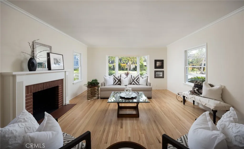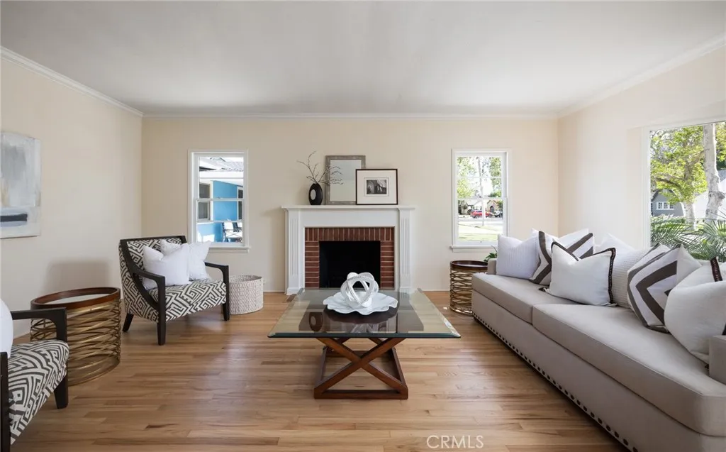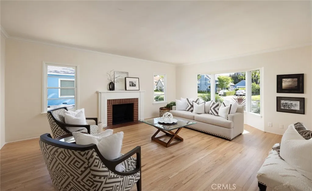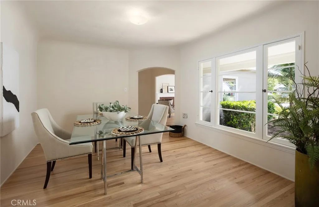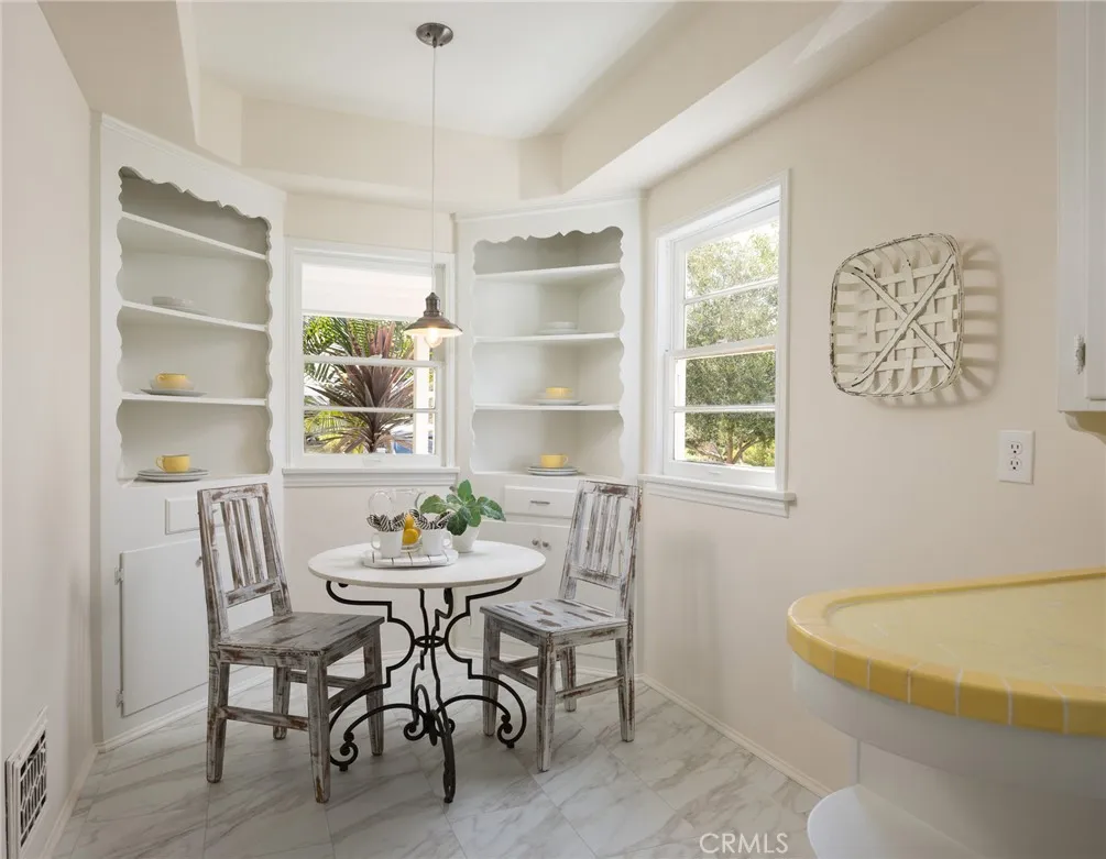 Tucked in on a winding, sycamore-lined street in sought-after Historic Floral Park, this charming vintage residence is just waiting for you to call it home! Newly refinished original hardwood floors, archways, nooks, and built-ins, vintage tile, wood-framed windows, and elegant panel doors with crystal doorknobs exactly what you come to Floral Park to find! Stroll up the curved walkway and the inviting covered porch with stunning original front door set the tone for what awaits inside. Step through the entry and take in the graceful archways that frame views into two beautiful living spaces. The spacious living room centers around a stately brick fireplace, perfect for cozy evenings or lively gatherings, and is enhanced by a picturesque bay window that fills the room with natural light. The formal dining room offers a generous setting for entertaining. The light-filled kitchen and adjoining breakfast nook capture the warmth and character of the home. Original sunny yellow tile has a delicate red pinstripe adding a cheerful vintage touch. A classic Wedgewood stove with an original hood creates a nostalgic focal point. Matching built-ins in the breakfast nook complete the space. New luxury vinyl tile extends through the kitchen, laundry area, and 3/4 bath. An elegant hallway leads to the 3 bedrooms and the hall bath adorned with white tile, sea-green borders, and delightful pencil accent tile. The primary bedroom features 2 closets, a sliding glass door offering a view out to the covered patio plus green grass & trees beyond, and an en-suite 3/4 bath with new shower. Freshly