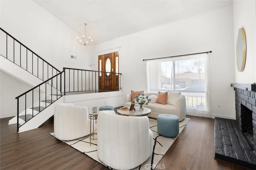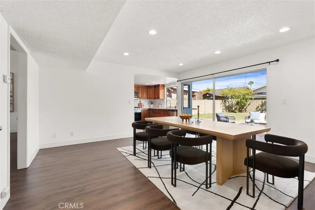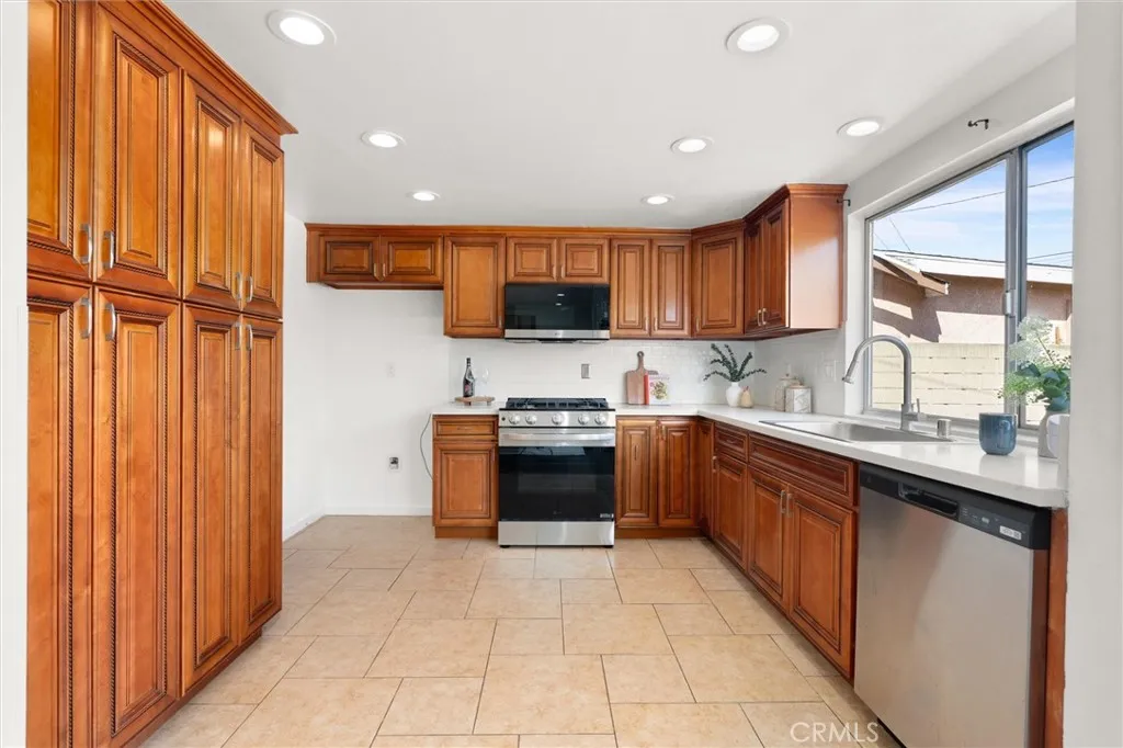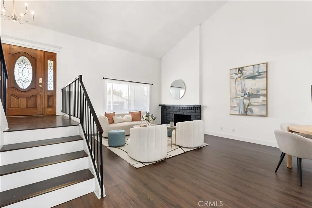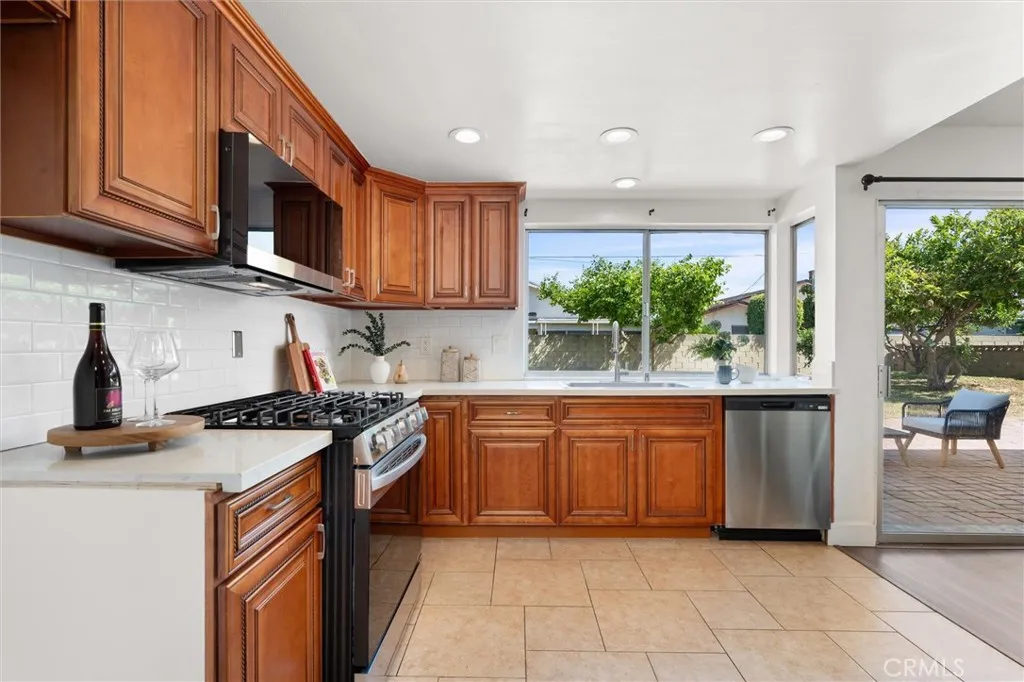 Welcome to this 1968 executive-style split-level home, tucked away on a quiet cul-de-sac. With 5 bedrooms, 3 bathrooms, and 2,404 square feet of living space, theres room for everyone to spread out and feel at home. As you step inside, youll immediately take in the openness of the layout, enhanced by vaulted ceilings that create an airy, expansive feelfrom the formal living room with its classic fireplace, to the cozy breakfast nook, the updated kitchen with quartz counters and a brand-new stainless range and microwave, and the spacious dining room thats perfect for gathering.The main level also features a generous bedroom and a beautifully remodeled bathroom with a walk-in showeran ideal setup for multi-generational living or guests. Youll also find direct access to the two-car garage, complete with a laundry area and extra storage. Upstairs, there are four additional bedrooms, including a spacious primary suite with its own bath and walk-in closet. The standout is the oversized fifth bedroomcurrently used as a flex space, but easily convertible into a larger primary suite, two additional bedrooms, or a family room. So many possibilities! A full bathroom completes the upper level.If outdoor living is on your wish list, the backyard deliversfeaturing a large brick patio, a generous grassy area, and multiple fruit trees including guava, persimmon, and citrus. Its the perfect spot to relax, entertain, and enjoy a laid-back Sunday barbecue. Theres even room to add a pool! With fresh exterior paint, an updated kitchen, laminate and tile flooring throughout, and refreshed bathr