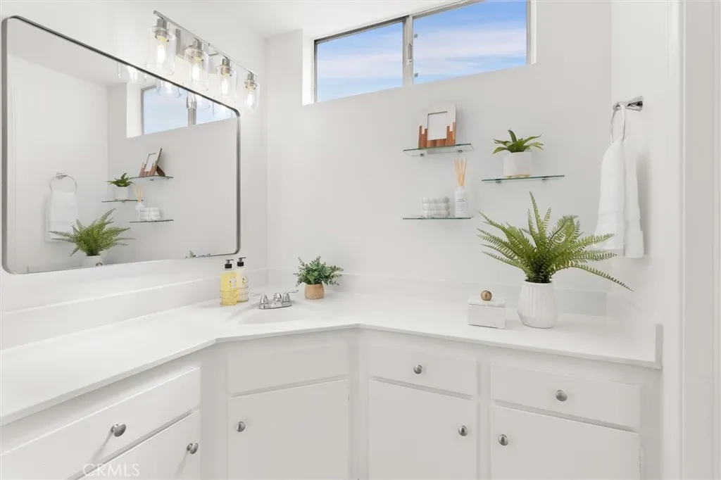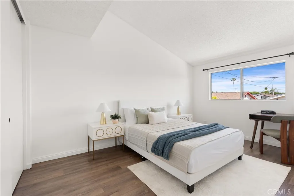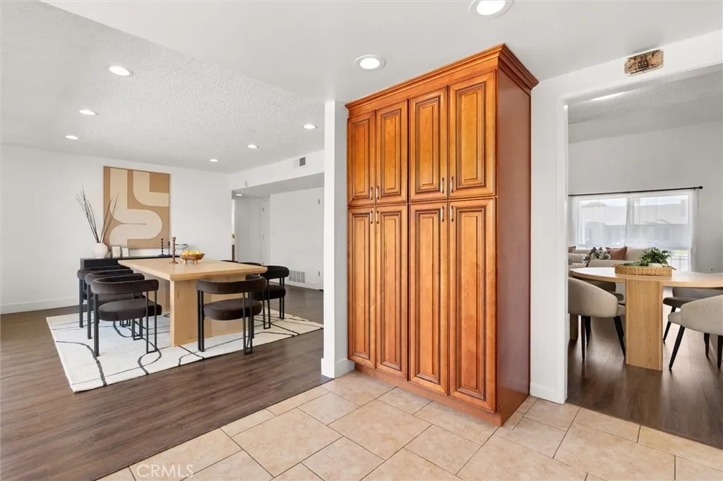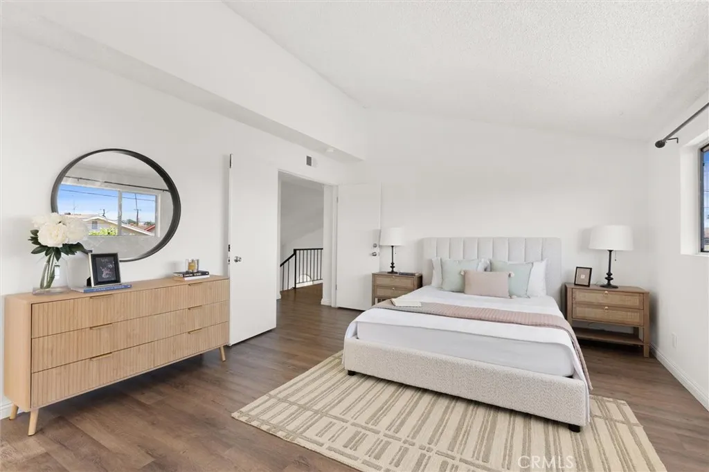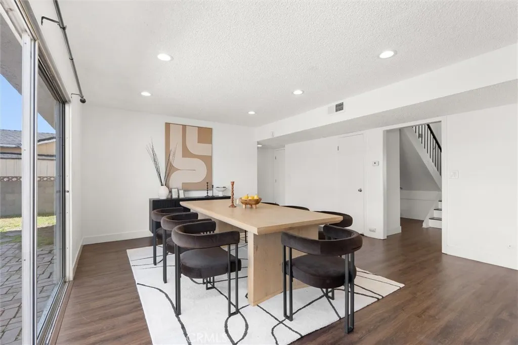 Welcome to this 1968 executive-style split-level home, tucked away on a quiet cul-de-sac. With 5 bedrooms, 3 bathrooms, and 2,404 square feet of living space, theres room for everyone to spread out and feel at home. As you step inside, youll immediately take in the openness of the layout, enhanced by vaulted ceilings that create an airy, expansive feelfrom the formal living room with its classic fireplace, to the cozy breakfast nook, the updated kitchen with quartz counters and a brand-new stainless range and microwave, and the spacious dining room thats perfect for gathering.The main level also features a generous bedroom and a beautifully remodeled bathroom with a walk-in showeran ideal setup for multi-generational living or guests. Youll also find direct access to the two-car garage, complete with a laundry area and extra storage. Upstairs, there are four additional bedrooms, including a spacious primary suite with its own bath and walk-in closet. The standout is the oversized fifth bedroomcurrently used as a flex space, but easily convertible into a larger primary suite, two additional bedrooms, or a family room. So many possibilities! A full bathroom completes the upper level.If outdoor living is on your wish list, the backyard deliversfeaturing a large brick patio, a generous grassy area, and multiple fruit trees including guava, persimmon, and citrus. Its the perfect spot to relax, entertain, and enjoy a laid-back Sunday barbecue. Theres even room to add a pool! With fresh exterior paint, an updated kitchen, laminate and tile flooring throughout, and refreshed bathr