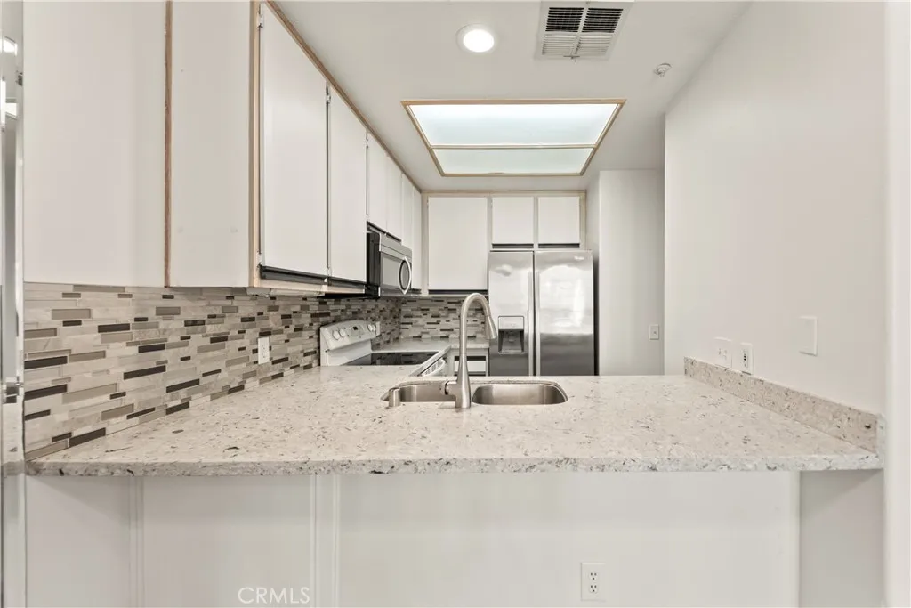 End Unit in Rancho Veracruz Elegant 2 Bed / 2 Bath Condo in Tustin Welcome to this beautifully refined 2-bedroom, 2-bath condominium offering 1,047 sq ft of thoughtfully designed living space in the highly coveted Rancho Veracruz community. Positioned as a desirable first-floor end unit, this home provides enhanced privacy, abundant natural light, and effortless access to the nearby community pool. The open-concept living and dining area features rich hardwood flooring, fresh designer paint throughout, and a charming fireplace that creates a warm and inviting atmosphereideal for both everyday living and entertaining. The well-appointed kitchen includes a refrigerator, microwave, dishwasher, and electric range, ensuring convenience and functionality. An in-unit washer and dryer further elevate the ease of daily living. Additional highlights include central heating and air conditioning, a private patio perfect for morning coffee or evening relaxation, and a two-car garage located directly adjacent to the unit, complemented by ample guest parking. * Breathtaking pool views and easy access to the Tustin Ranch golf course * Beautifully upgraded bathrooms featuring new flooring, designer lighting, and elegant vanity mirrors * Gourmet kitchen with a newly redesigned and remodeled countertop, replacing the original split-level tile finish * Four sophisticated ceiling light fixtures that elevate the ambiance throughout * Rare, oversized two-car garage (363 sf) with exceptional depth, offering ample space for storage or additional uses. Residents of Rancho Veracruz enjoy an array of
