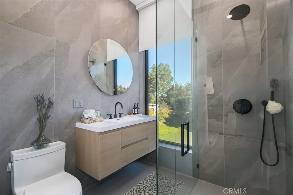 Set south of Ventura Boulevard in the highly desirable hills of Tarzana, this exceptional gated view estate spans over an acre and captures sweeping panoramic vistas. Offering privacy, scale, and versatility, the property features a 4-bedroom, 4.5-bathroom main residence complemented by a newer, fully detached 3-bedroom, 2-bathroom modern ADU, ideal for guests, extended family, or income potential. The main home is thoughtfully positioned to take full advantage of the breathtaking views, with light-filled living spaces that open seamlessly to the outdoors. A well-designed floor plan includes spacious living and dining areas, a comfortable kitchen, and generously sized bedrooms, creating an inviting environment for both everyday living and entertaining. Outdoors, the grounds unfold into a true retreat, complete with a sparkling pool and spa, expansive patio areas, and endless opportunities to enhance or customize across the sprawling lot. Mature landscaping and elevated positioning provide a sense of seclusion while still being moments from Ventura Boulevards premier dining, shopping, and conveniences. The newer detached ADU showcases a sleek, modern aesthetic with clean lines, open-concept living, and contemporary finishes throughout. Featuring dramatic 12-foot ceilings and a usable rooftop deck, it offers exceptional flexibility as a guest house, private workspace, or additional income-producing unit. A rare offering combining land, views, and dual living in one of Tarzanas most sought-after locations.