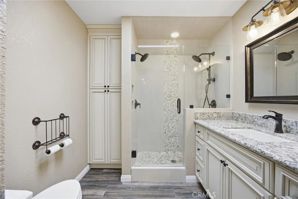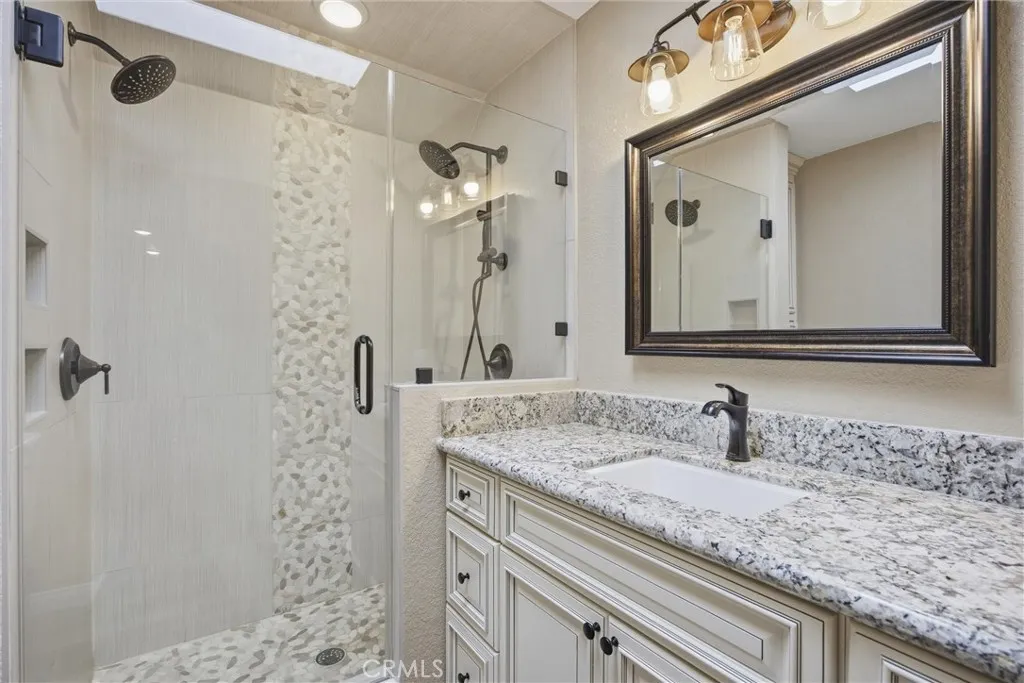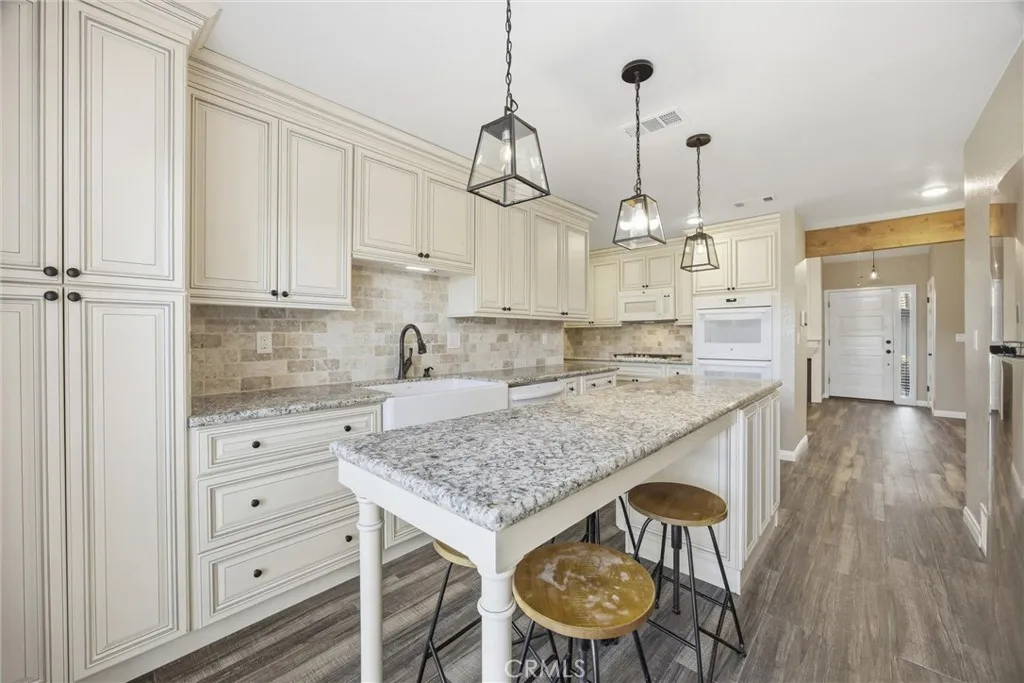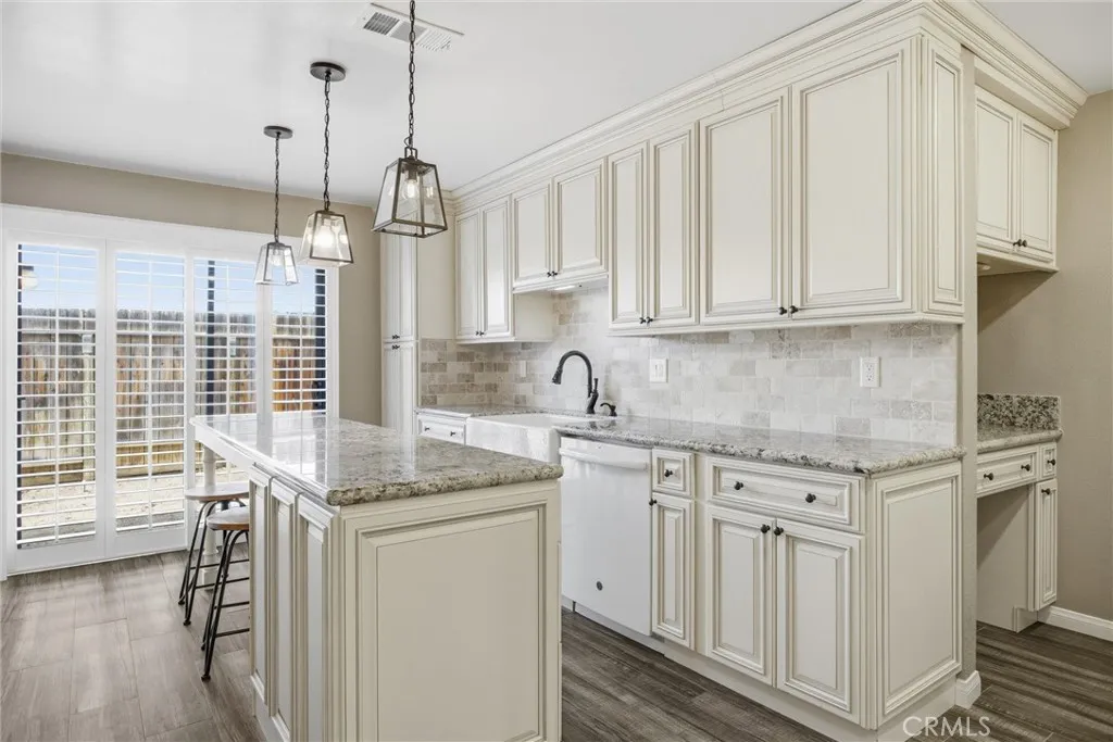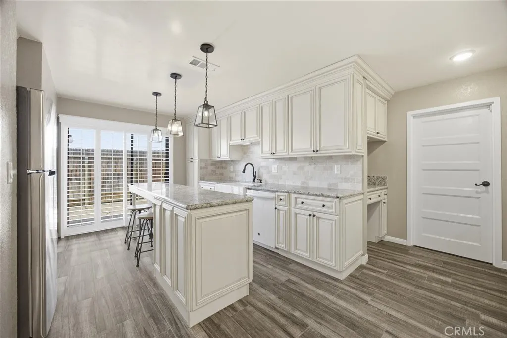 Tastefully updated 2-bedroom, 1-bath condo located in the desirable Tillerman Hills community of Northeast Bakersfield. This beautifully maintained home showcases timeless finishes throughout, including granite countertops, a stylish tile backsplash, white cabinetry, and durable tile flooring. The thoughtfully designed kitchen features a farmhouse sink and a large center island with seating, perfect for both everyday living and entertaining. Enjoy added touches like shutters throughout and a custom-tiled shower that brings a spa-like feel to the bathroom. Step outside and take advantage of the community's amenities, including a sparkling pool, sport courts, and BBQ area; ideal for relaxing or hosting gatherings. Conveniently located near Bakersfield College, the scenic Panorama Bluffs, and the Kern River, this home offers a perfect blend of comfort, style, and accessibility.