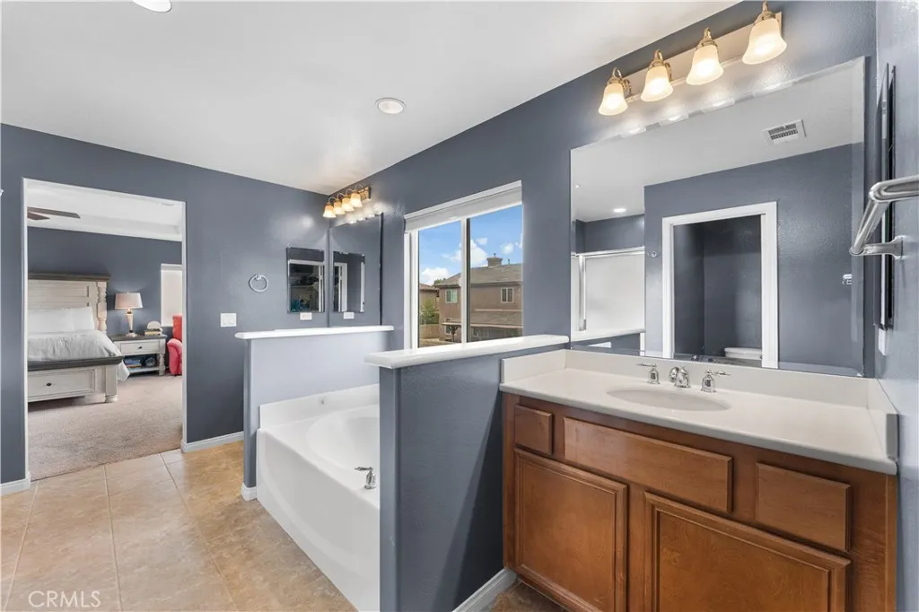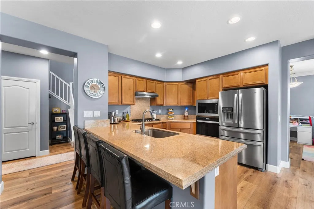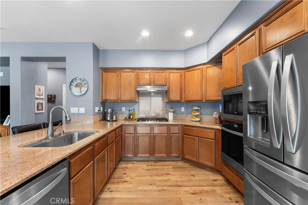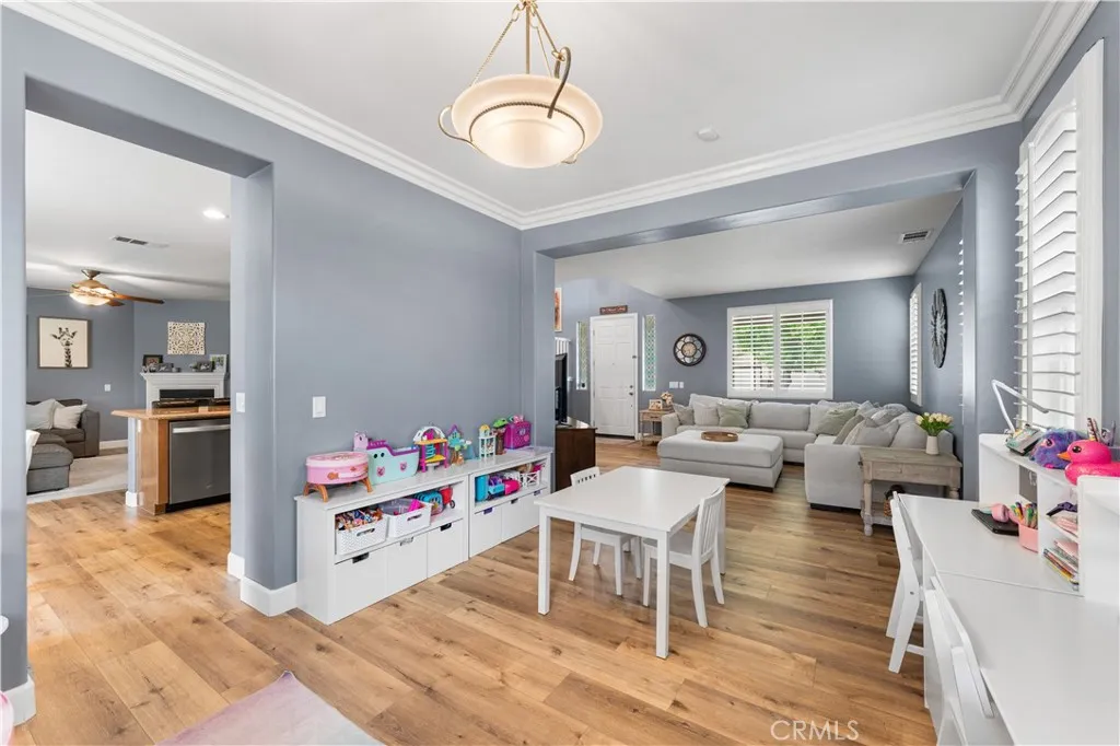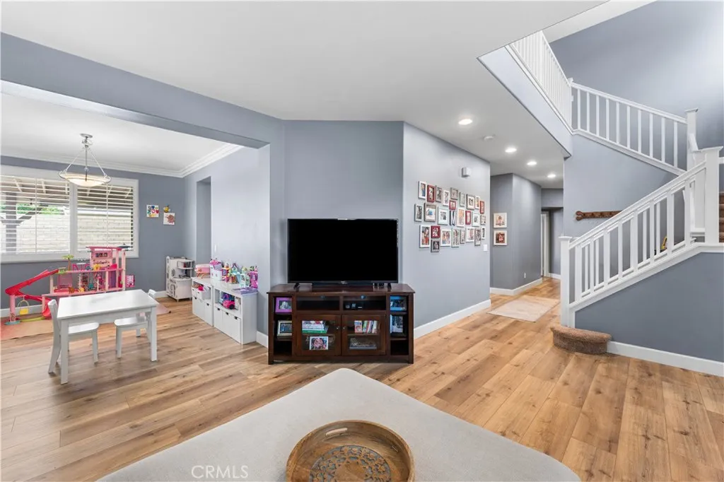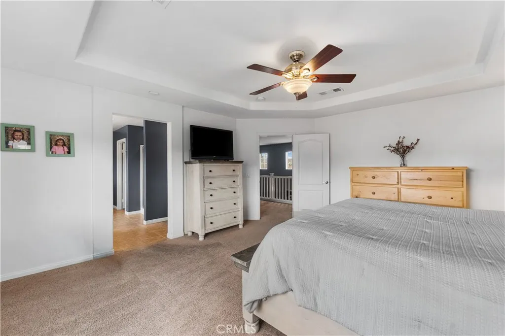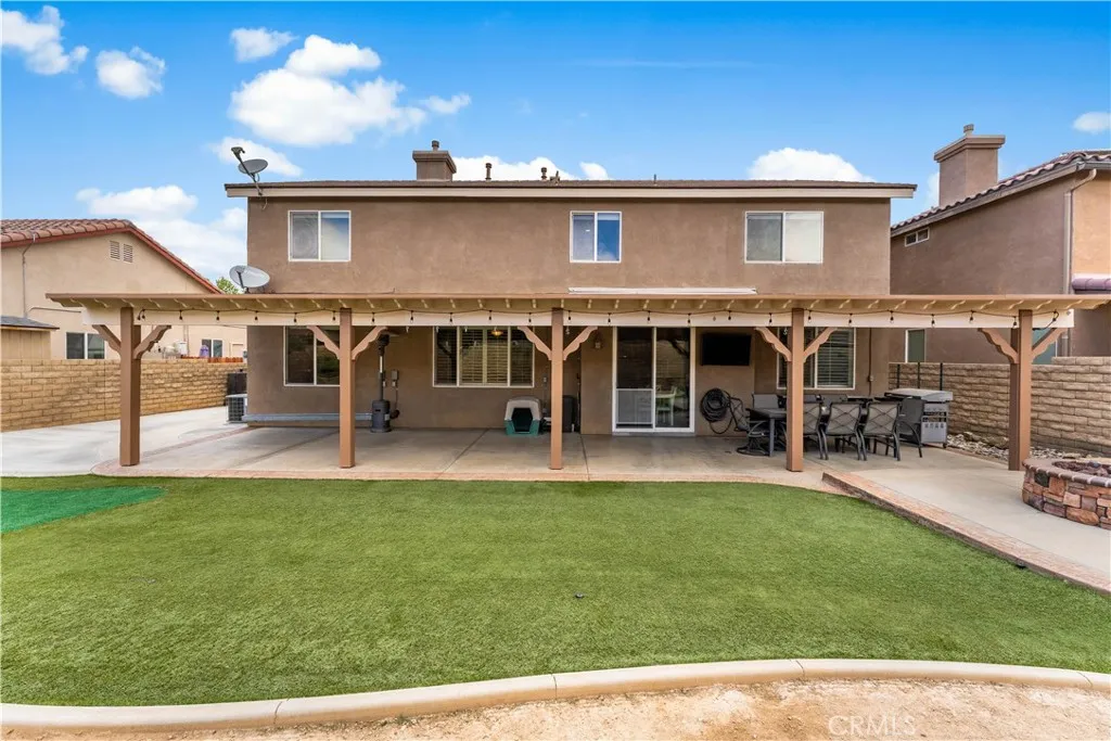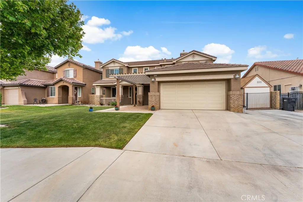 TRUE PRIDE OF OWNERSHIP! This beautiful Quartz Hill home boasts 5 bedrooms, 3 full baths and 2,859 square feet of living space! Large kitchen with granite countertops, UPGRADED stainless steel appliances (sale includes refrigerator), breakfast bar and dining area. The family room has a cozy fireplace and a large entertainment nook. Spacious formal living/dining room combo, DOWNSTAIRS bedroom, and a BONUS ROOM that could easily be a 6th bedroom! UPGRADED flooring and baseboards throughout the lower lever. The primary retreat has an elegant tray ceiling, HUGE walk-in closet, separate shower/tub and 3 vanities! Other features include plantation shutters, UPSTAIRS laundry room, ceiling fans throughout and a 2 car attached garage. The backyard offers a FULL LENGTH covered patio, gas firepit, artificial turf, elevated brick planter, large storage shed and possible RV access! Located on a quiet cul-de-sac this home is TRULY A MUST SEE!