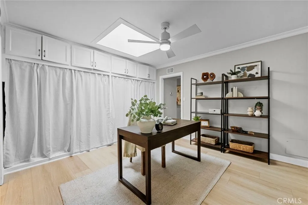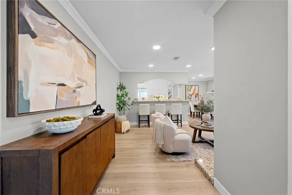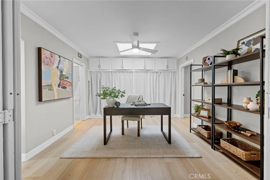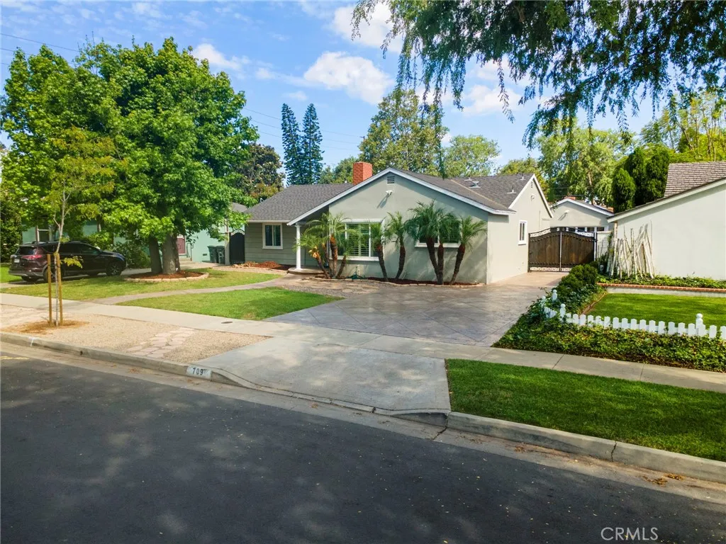 Nestled in the heart of the charming and historic Santa Clara Manor neighborhood, this beautifully updated home offers a rare blend of character, comfort, and timeless appeal. Originally built in 1951 by Murry Development, this residence began life as Plan C and was expanded by its original owner, Lee Hasenjaeger, in both 1954 & 1958. Set along a tree-lined street known for its pride of ownership and welcoming atmosphere, this home is ready to begin its next chapter. The current ownersa well-known chef and his wifehave lovingly enhanced the home with a stunning kitchen, updated bathrooms, new flooring, new windows, new plumbing and hvac, Tesla car charger, new stamped concrete and many more thoughtful upgrades. A winding pathway leads you to a cozy covered porch, setting the tone for what awaits inside. Step into a bright, open-concept living space featuring wide plank wood-grain flooring, a fire-lit living room, and seamless flow into the dining area and kitchenperfect for both everyday living and entertaining. Plantation shutters and crown molding add a touch of classic elegance throughout. The kitchen is both beautiful and functional, offering abundant counter space and storage. Highlights include a Viking 4-burner cooktop with griddle and downdraft vent, plus included stainless steel refrigerator, washer, and dryer. Bathed in morning light, the kitchen connects to a convenient mudroom designed to keep everything organized. Additional spaces include a skylit office with built-in storage and a safe, and a comfortable TV room overlooking the backyard. The primary bedroom f