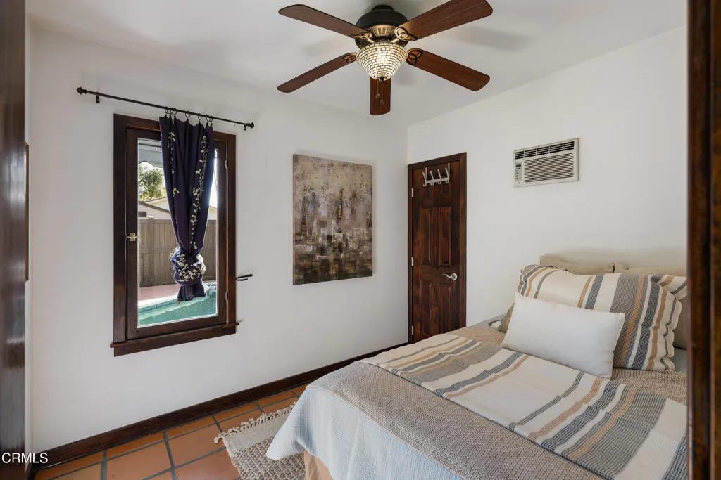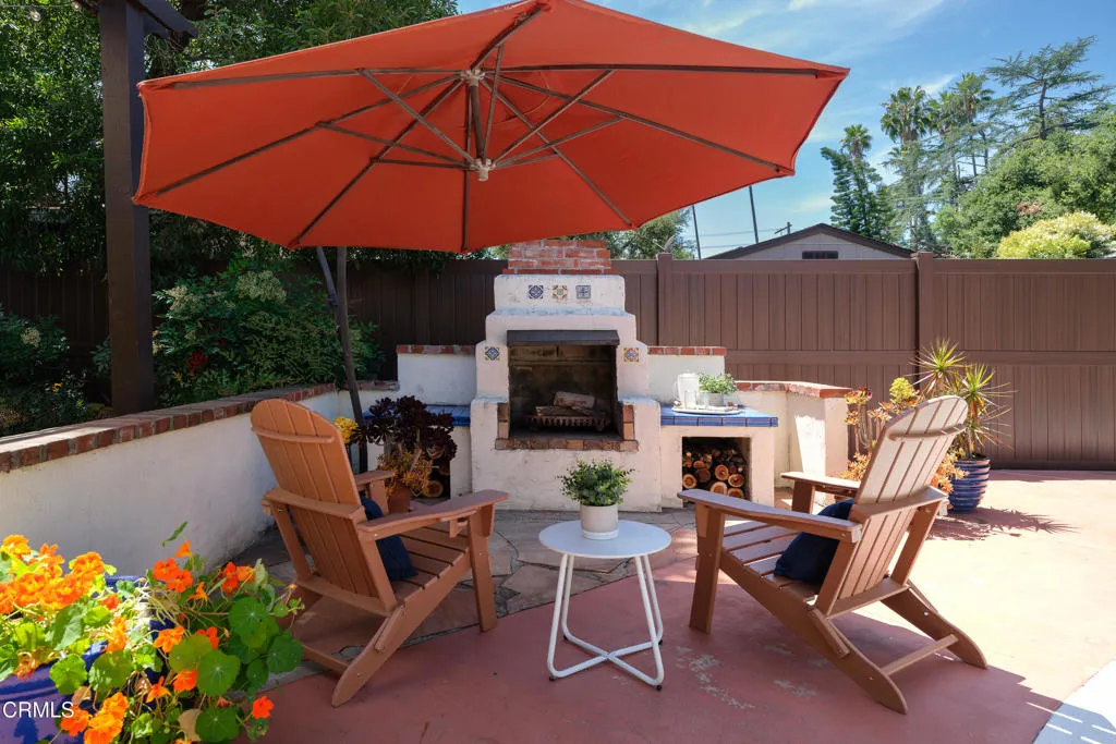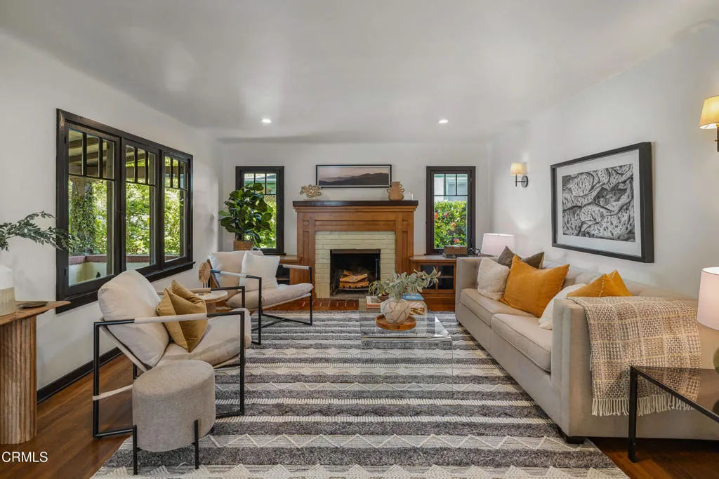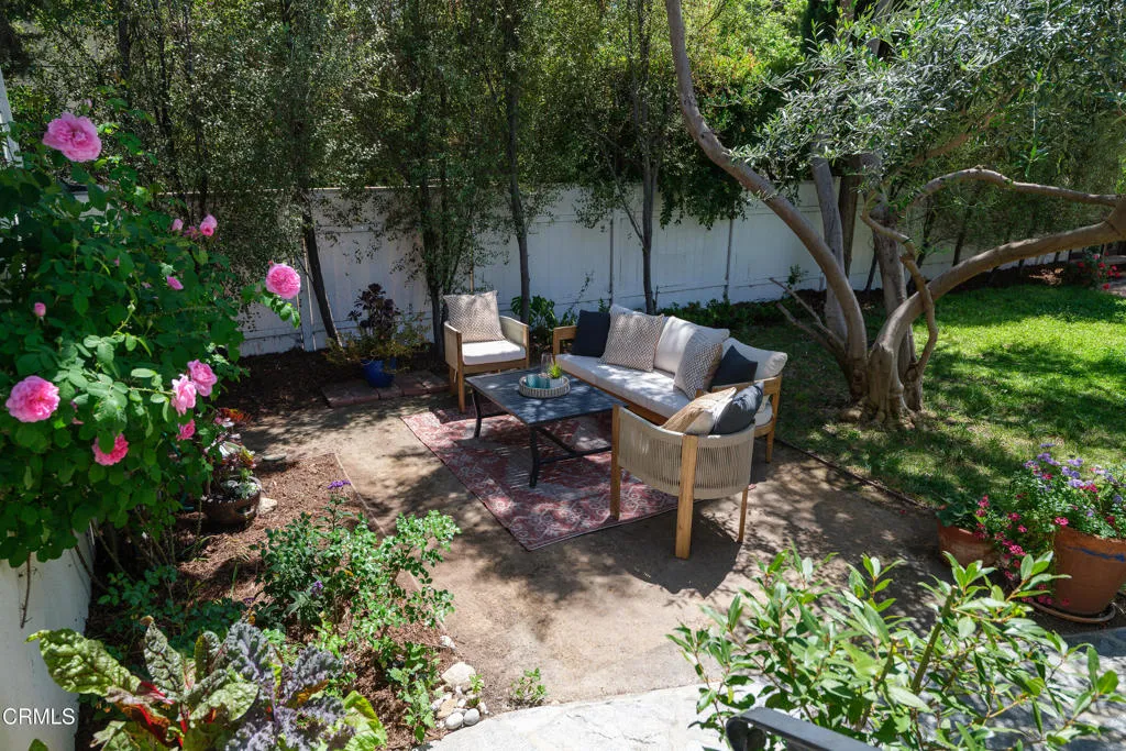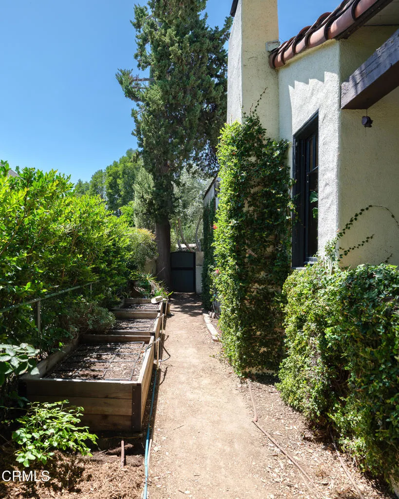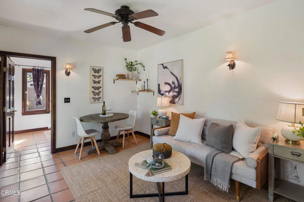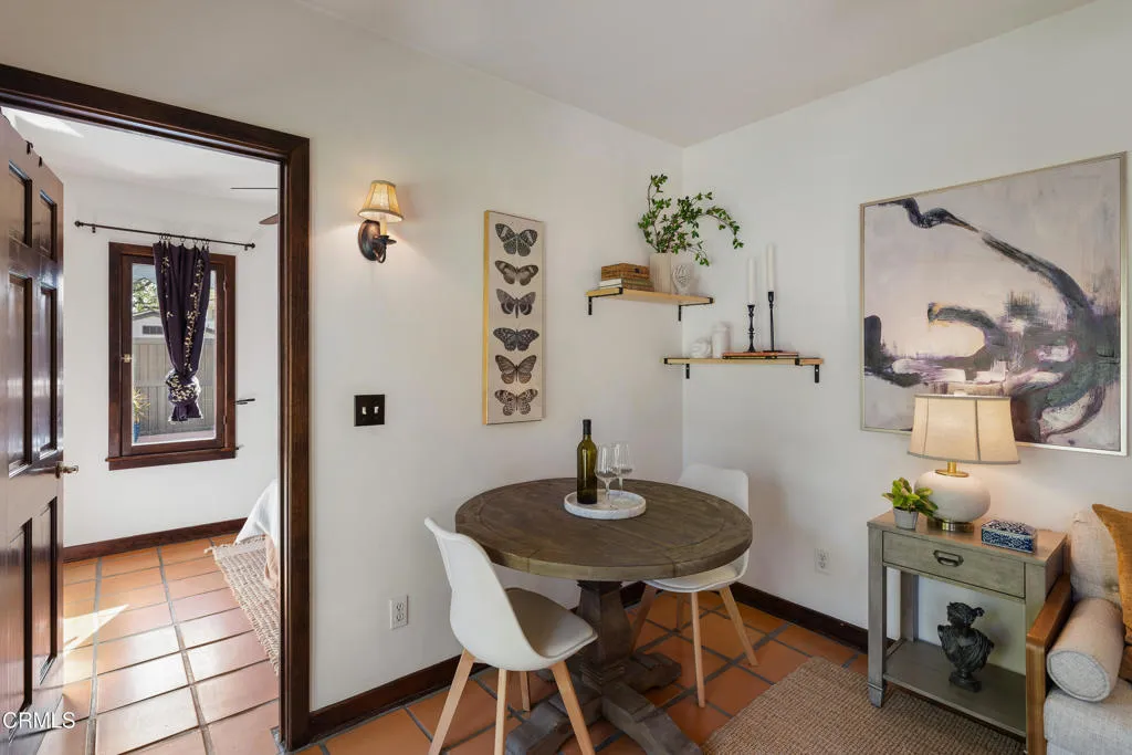 This beautiful three bedroom, two bath 1,454 square foot (as measured) Spanish, with an enchanting one bedroom, one bath, 356 square foot (as measured) accessory structure is absolutely picture-perfect. You enter the romantic residence via a welcoming front porch that steps into the elegant interior. The gorgeous living room features hardwood floors and a central decorative fireplace, flanked by custom rich wood, glass-fronted cabinetry that beckons you in. Additionally, there is an inviting formal dining room wrapped in windows that adjoins the impeccably remodeled kitchen with stainless steel appliances, an expansive peninsula with bar seating, quartzite counters, as well as a built-in desk or workspace. There are three bedrooms with plenty of storage, as well as two magazine-worthy renovated bathrooms. The back accessory structure has one bedroom, one bath, and a kitchenette. It has limitless possibilities and could be a fantastic office, guest abode, or entertainer's cabana as it is sited right off the pool. Other highlights at the property include designer fixtures, coved ceilings, arched doorways, gleaming hardware, and sumptuous marble tile. The home, which has incredible curb appeal, sits on a verdant 8,208 square foot lot filled with an abundance of blooming blossoms as well as native plants. It has a flower-lined front path surrounding the lush lawn that leads you to the gracious raised porch. The backyard, with a glistening pool, is a paradise that showcases the best of the California lifestyle. There are numerous spaces for relaxing beneath the stars, quiet refl