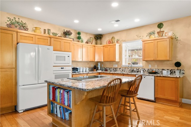 Welcome home to 11 Marlin Court! This 2,200 sqft. home is situated in a quiet cul-de-sac and was custom built with aging in place in mind with accessibility features throughout. You are immediately drawn to the curb appeal with mature, manicured landscaping which only sets the tone for how the home has been maintained. As you enter the front door, you'll be greeted by the vaulted ceiling in the living room that has a cozy gas fireplace, oak hardwood floors, recessed lighting, and a large window for lots of natural light. The living space is open to the kitchen that features granite countertops, maple cabinetry with pots and pans drawers, white appliances, a garden window, and a large island perfect for entertaining. There is also plenty of space to fit a dining table for all the upcoming holiday gatherings! Down the wide hallway you will find the primary suite that has access to the back patio, a walk-in closet in addition to a second closet, and an expansive en suite bathroom. This bathroom has an oversized walk-in shower, jetted tub, and split vanities, one of those with wheelchair capabilities. On the other side of the home you will find three bedrooms all with Hunter blinds and the guest bathroom with a tub and dual sink vanity. There is no lack of storage in this home with matching maple cabinetry in the hallway and an indoor laundry room with folding counter. You cannot miss the finished 3 car garage that is extra deep with epoxy floors, a work bench, utility sink, and storage cabinets. This home truly checks the boxes on the wish list with size, location, quality, and features. Come make Marlin Court where your next chapter begins!