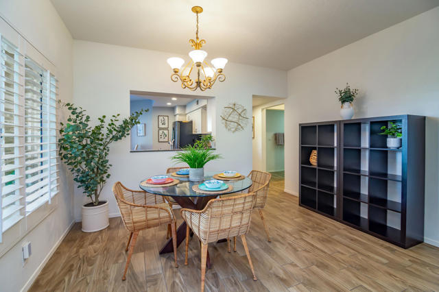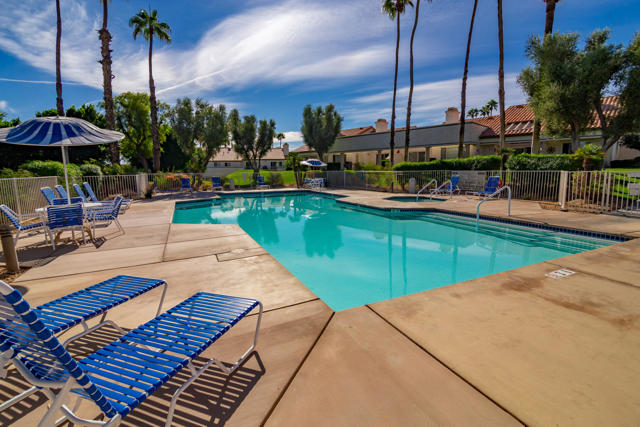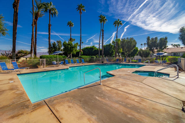 Tastefully Remodeled 2BR/2BA Condo with Stunning Southern Golf Course Views. Step into this beautifully remodeled downstairs condo featuring two bedrooms and two baths, perfectly positioned for sweeping southern views across multiple fairways. The custom kitchen showcases quartz countertops, newer cabinetry, stainless steel appliances, designer lighting, and a built-in desk. Enjoy the desirable kitchen nook, ideal for a breakfast table or extra workspace.The primary suite offers an updated bath with quartz countertops, framed mirrors, LED lighting, and a sleek frameless glass shower with floor-to-ceiling tile. An updated wet bar with quartz countertop enhances the open-concept living area, which features wood-look tile flooring throughout, plantation shutters, and a newer sliding door leading to the Saltillo-tiled patio, perfect for relaxing and enjoying the views. Short-term rentals permitted and offered nicely furnished per inventory list.Community Highlights:Prime mid-valley location with easy I-10 access, close to dining, shopping, grocery stores, and the new Acrisure Arena.Desert Falls amenities include pickleball, tennis, fitness center, 24-hour guard-gated security, internet, and extended cable. Golf is available with pay-as-you-play or optional membership. Enjoy the best of resort-style desert living in this stylish and move-in ready Desert Falls Country Club condo.