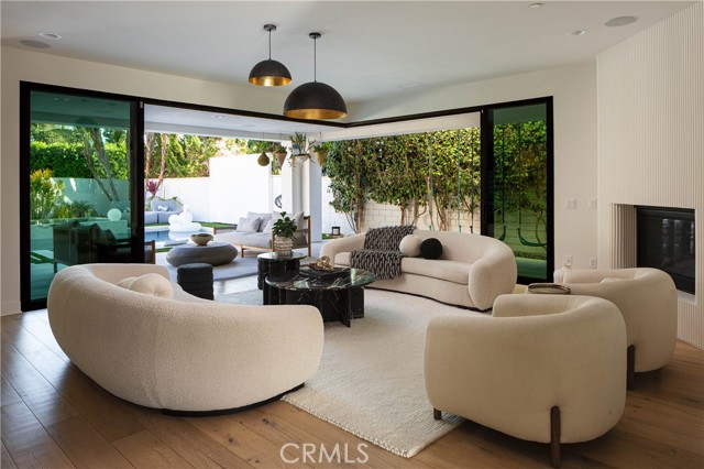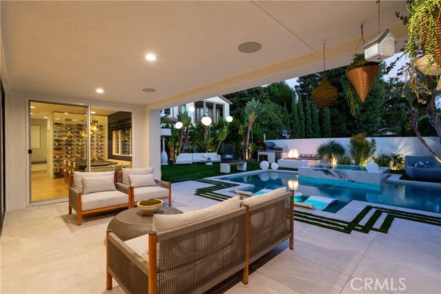 Beautifully constructed in 2018 by Melia Homes, this modern coastal residence sits within an exclusive enclave of just twelve homes. Every detail of this two-story, 3,600-square-foot home has been thoughtfully enhanced by its current owner, blending refined design with resort-style living. Inside, the first floor is entirely clad in wide-plank white oak flooring and framed by 10-foot ceilings. A downstairs bedroom with separate entrance offers flexibility for guests or a home office. The open-concept layout flows seamlessly from the kitchen to the dining and living areas, where wall-to-wall sliding glass doors open on two sides—creating an effortless indoor-outdoor connection to the entertainer’s backyard; Newly reimagined & completed by Pool Logic in 2022 it is a true private resort. The Pebble Tec pool, shimmering with an abalone and mother-of-pearl blend, features built-in seating, a shallow sun shelf for in-water lounging, and a waterfall-edge spa constructed from solid marble slabs with a spillover design. Entertain beneath the stars with a Fontana pizza oven, flat-top grill, outdoor refrigerator, and outdoor shower—all framed by a modern fireplace and 3D illuminated wall art that transforms the space after dark. The chef’s kitchen is outfitted with an all-stainless KitchenAid appliance suite, including a built-in refrigerator and freezer, six-burner stove, and double oven, along with a built-in Bosch espresso maker and a striking 120-bottle glass wine wall adjacent to the dining area. Upstairs, a spacious bonus living room provides additional space for relaxation & entertainment while wired speakers throughout, Arteriors designer lighting, a Nest smart home system, and remote-controlled shades complete the elevated interior experience. Set within one of Eastside Costa Mesa’s most desirable areas, 311 Costa Bella Court delivers the perfect balance of modern design, privacy, and resort-quality amenities—every element thoughtfully curated to create a one-of-a-kind home experience.