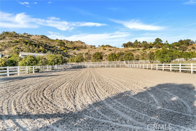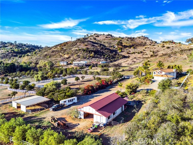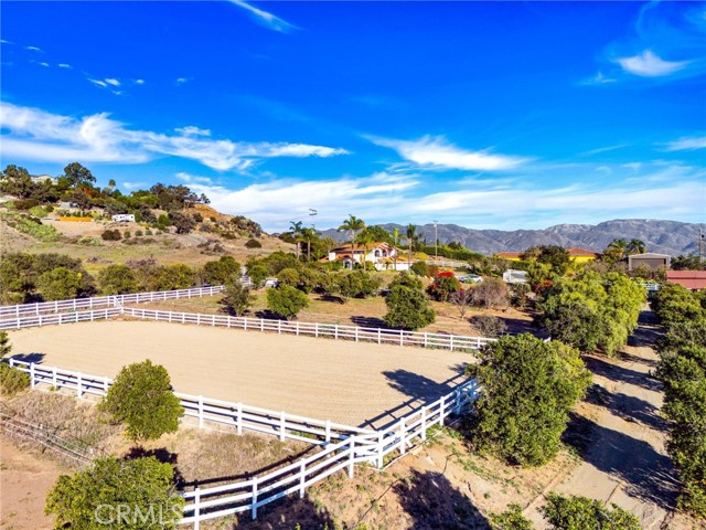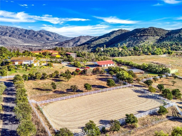 HILLTOP EQUESTRIAN PROPERTY with DISTANT OCEAN VIEWS This property offers cool ocean breezes in rural, quiet seclusion including well designed horse amenities, all within 15 min of all city amenities/shopping/wineries & 3 different golf resorts. 5.6 acres, on a quiet secluded hilltop ALL FULLY FLAT & USABLE FOR HORSES, - set up for professional use. Well suited for a private training/sales facility, a Rehab center, Equine therapy, or the discriminate private horse owner. Fast & easy freeway access from 2 directions to I-15 just 5 min down the hill. Southern access road from Hwy 76 is specifically build for semi truck/large horsetrailer access. (General Alert: Living on a hilltop requires uphill driving to the hilltop!) Property is fully fenced & gated (outer perimeters incl. chain-link fence for dogs) 2560sq, 3Br, 3 full Ba + Den, Spanish style custom home with a modern & warm ambience, largely remodeled in 2019 & further extensive updates in 2025 incl. a brand new roof. High, cathedral ceilings throughout living area give an open feel Inviting huge Master suite & large bathroom w. jetted tub & double shower Kitchen shows granite counter tops & stainless steel appliances 2 wood-fireplaces in living room & family room, plus 1 electric fireplace in Master suite ---------------- 6-stall (12x12 stalls w. paddocks) custom built Silverado barn with extra high/wide raised breezeway - 16' wide barn isle Wood paneled stall fronts- Colored concrete barn isle- Large Porch for hay storage & socializing- Tack room 12x12 - Indoor, hot water wash stall w. oversized water heater - Automatic fire sprinkler system acc. to CA building code ----------------------- Additional 6-stall mare motel barn(12x24 stalls) 90x180 arena with professional German Geo Textile (GGT) footing and irrigation system - 5 large seasonal pastures - Property is currently on Municipal water w. agricultural discount – (also well on property – not in use) Plenty of room for additional arenas/horse facilities Everything on this Equestrian property is fully permitted and built by licensed contractors. Direct, unlimited trail riding access on well maintained fire-roads into the surrounding hills, right out your gate. Zoned for 10 horses/acre (Total of 55 horses - L2 zoning - Residential/Agric) The property location is naturally protected from Santa Ana Winds. All operational equipment is included! (Tractor, GGT arena drag etc.