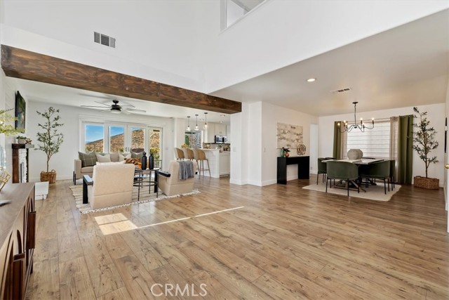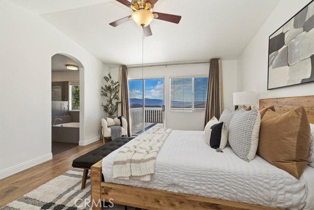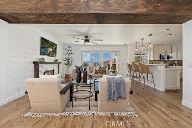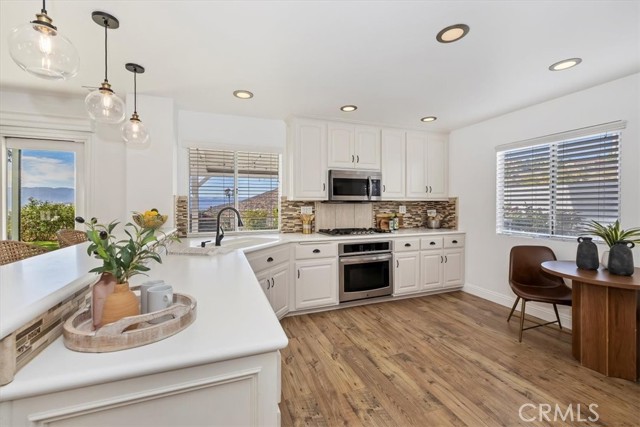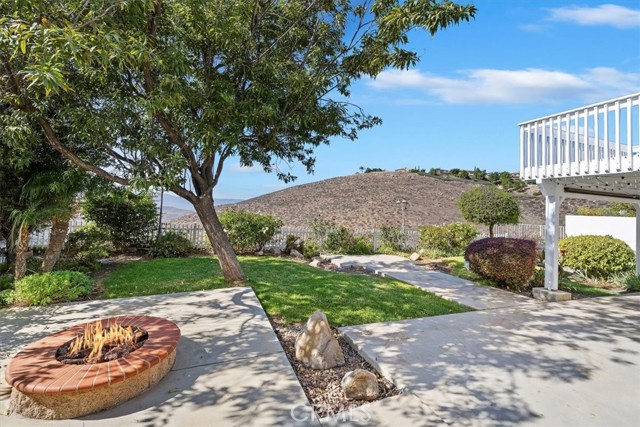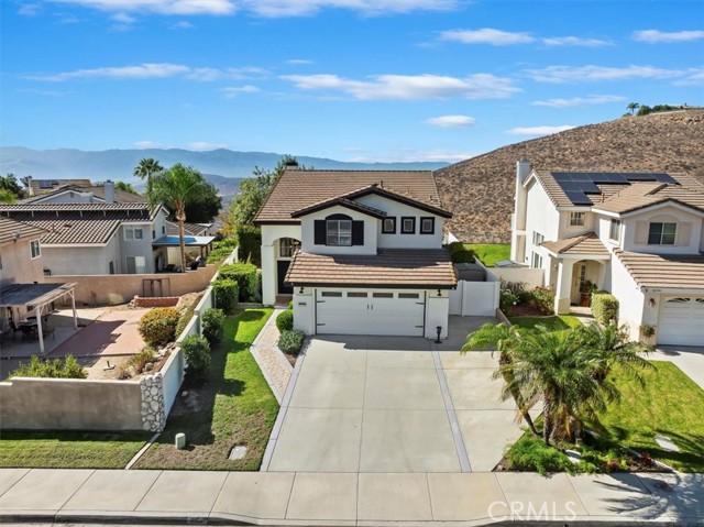 Rare combination of amazing infinity views and no home in front or behind of this highly upgraded 4 bedroom and 3 bath home. Endless views from almost every room of the canyon, rolling hills, city lights and the lake. The formal entry with two story ceilings leads to the highly desired open concept layout with the living room open to the dining room and family room which is open to the kitchen. Features in the immaculate kitchen are a breakfast bar, custom cabinets, stainless steel appliances, custom backsplash and pantry with pull out shelves. Views from the kitchen and the family room which offers a custom surround fireplace. This home has just recently been upgraded with flooring, baseboards, recessed lighting and shiplap walls. Ample natural light flows throughout the home. Main floor laundry room with direct garage access and guest bathroom. Upstairs are 4 bedrooms with one open to the primary bedroom that is great for a nursery or office and can easily be converted to a separate bedroom. The master retreat has a large balcony to enjoy the views and provide shade for the patio below. The ensuite features dual sinks, glass enclosed shower walk in, separate soaking tub and a walk in closet. Spacious garage with built-in cabinets. Extended side driveway for additional parking. The back yard is perfect for entertaining while enjoying the views with covered patio, separate gas firepit seating area, and there is a large side patio wired for the new owners to add a spa (not included). The property line goes down the hill which allows the potential for a large deck off the back and potential for a terraced hill for planting or multiple seating areas to take advantage of the views. Nearby are great hiking trails, park areas and located in a great school district, close to shopping. Truly a unique hilltop property you need to visit to appreciate.