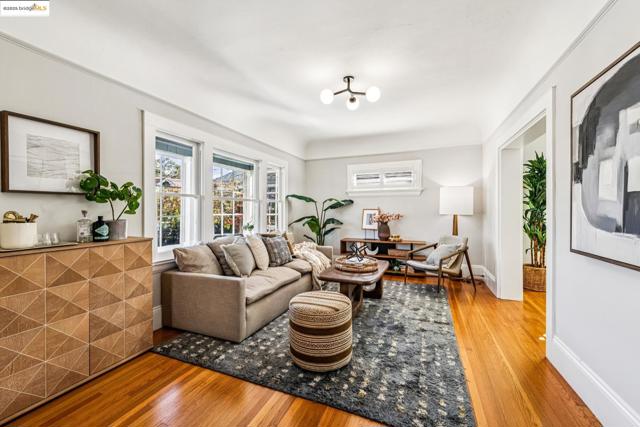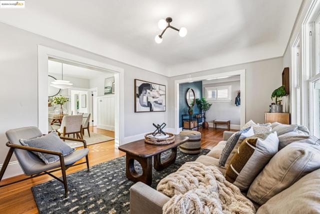 Enjoy the best of Berkeley in this beautifully designed Craftsman featuring 3 bedrooms, 2 baths, and an enchanted backyard garden oasis, tucked at the end of a peaceful cul-de-sac. With 1,467± sq ft plus a spacious basement and bonus room (not included in square footage), this home blends timeless architecture with modern updates. Greet neighbors from the welcoming front porch and step into a foyer showcasing wainscoting, coved ceilings, crown molding, and gleaming hardwood floors. The sunny living room flows to a formal dining room with built-ins and a fireplace. The newly renovated eat-in kitchen honors the home’s vintage charm with modern cabinetry, stainless appliances, and a view of the lush garden. Two bright bedrooms and a primary ensuite complete the main level. Downstairs offers a large basement and bonus area ideal for a family room, office, or creative space, plus interior garage access. Outside, the magical garden oasis features mature plantings, raised beds, and inviting entertaining spaces, plus a gated rear yard with endless possibilities. Perfectly located near Berkeley Bowl, UC Berkeley, Ashby BART, Adeline farmers market, restaurants, and College Avenue shops—this South Berkeley gem combines charm, craftsmanship, and modern living.