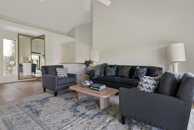 TURNKEY LIGHT AND BRIGHT EAST FACING CLASSIC UNIT (approx 1,245 SQ FT) WITH PRIVATE DRIVEWAY, 2 CAR GARAGE. This end unit is the perfect spot to vacation for short term renters or folks who want a 2nd get-a -way home. Characterized by large sliding glass doors and windows, beautiful Prego LVT flooring, cathedral ceilings and glass enclosed fireplace. Bedrooms are spilt on either side of living room. Double door entry to primary suite, sparkling upgraded bathroom, walk in closet. List of many additional upgrades is available.