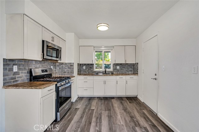 This 4-bedroom, 2-bathroom home features updates, including granite countertops in the kitchen and scratch-resistant flooring throughout the main living areas. The layout includes a spacious living room and a kitchen with modern finishes. The two full bathrooms have been updated with contemporary fixtures. Outside, the property includes a large backyard suitable for outdoor activities, gardening, or potential future improvements. This home combines updated interior features with functional outdoor space, making it suitable for a variety of needs.