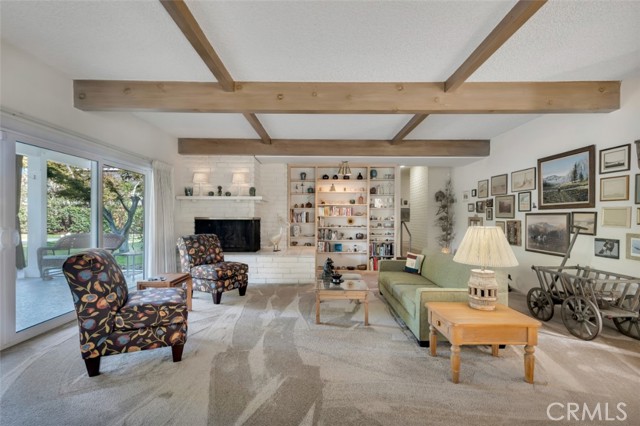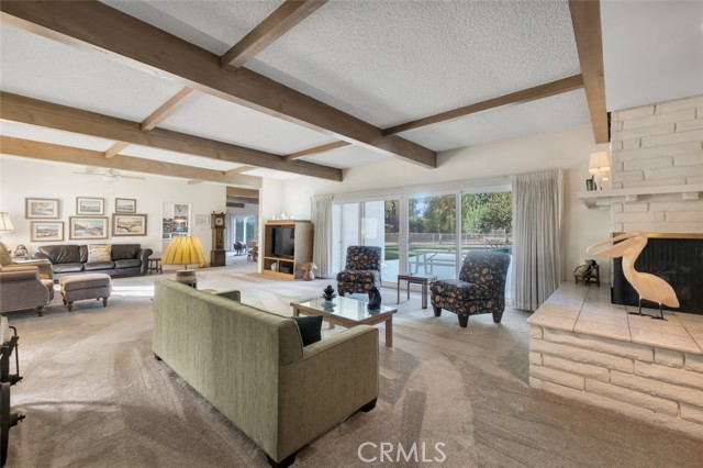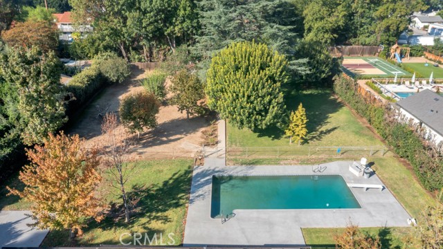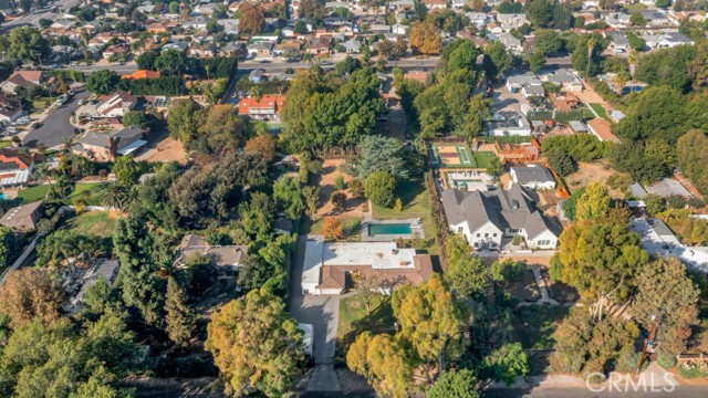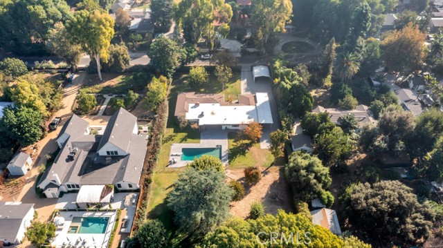 Behind private gates & nestled on nearly one acre of lush, tree-filled grounds, this distinguished 4-bedroom, 2.5-bath Northridge residence embodies the warmth, character, & tranquility of a true California estate. A deep setback from the street & long gated drive create a grand approach, with generous parking that includes a 2-car attached garage, 4-car carport, & expansive RV access. At the heart of the home, a serene front courtyard framed by vibrant landscaping welcomes you inside to nearly 3,200 sq ft of light-filled living space. Step down to the impressive main living area featuring dramatic open-beam ceilings, a statement fireplace with raised hearth, & custom built-ins, while walls of glass open to the covered patio & pool, seamlessly connecting indoor & outdoor living. A large picture window on the opposite wall showcases the front courtyard, flooding the space with natural light & creating a beautiful sense of symmetry. The adjoining family room & formal dining area with additional backyard access, & the spacious kitchen—with built-in cooktop, double ovens, & cozy breakfast nook—offer perfect flow for entertaining & everyday living. The home’s thoughtful layout continues with a powder bath for guests, a large laundry room with wall-to-wall built-in storage, & direct garage access. All bedrooms are found in the north wing of the home, including a peaceful primary suite with fireplace, ample closet space, & an ensuite bath featuring wraparound dual-sink vanity, oversized shower, & a second walk-in closet that impresses in size. Three additional bedrooms share a hall bath with separate tub & shower, each enhanced with ceiling fans & natural light. Outside, the backyard unfolds like a private park, with a covered patio featuring ceiling fans & retractable awnings, a sparkling pool with diving board, vast lawn, & a canopy of mature trees offering shade & serenity. A powerful 22 kW backup generator adds peace of mind & convenience, ensuring uninterrupted comfort year-round. The property is zoned LARA, suggesting potential for an ADU, guesthouse, or future expansion (buyers to verify). Ideally located near the Northridge Fashion Center, Porter Ranch Vineyards Shopping Center, popular dining destinations, & beautiful local parks, the home provides easy access to the 101 & 118 Freeways as well as connecting major thoroughfares, & falls within the boundaries of highly rated Napa Street Elementary & Sutter Middle School.