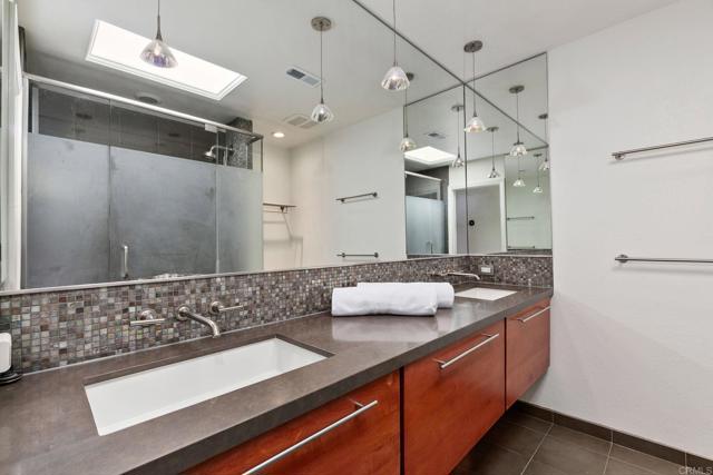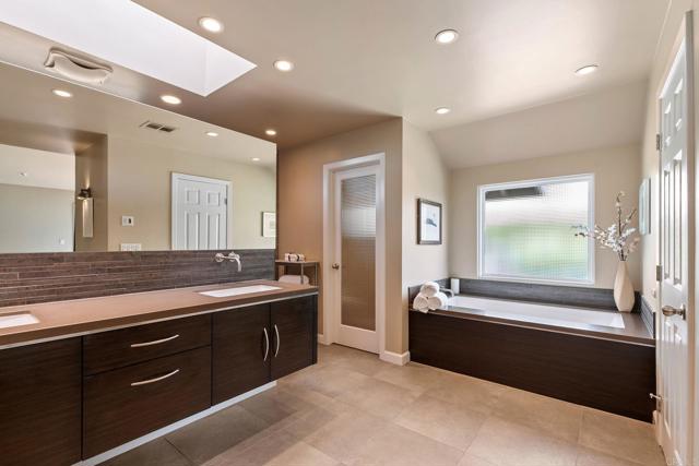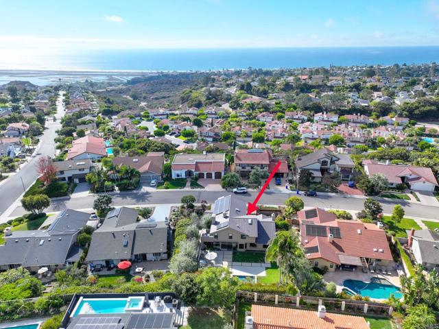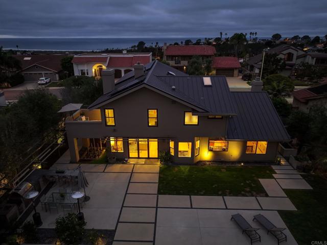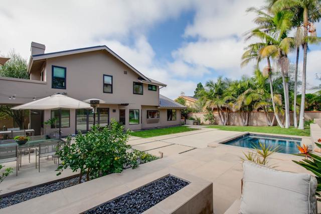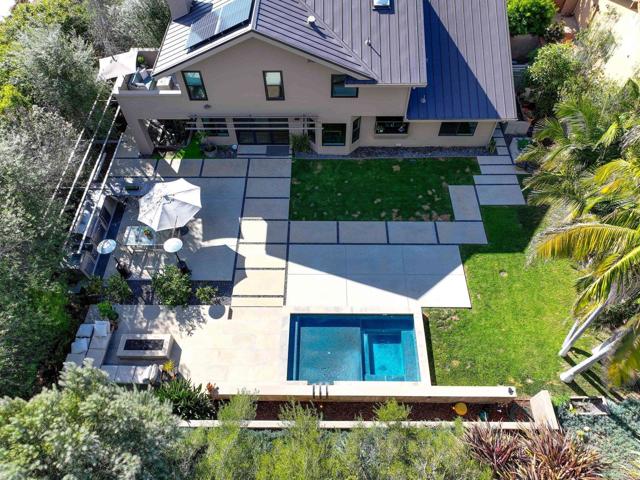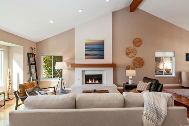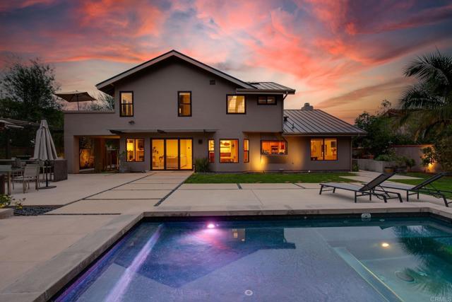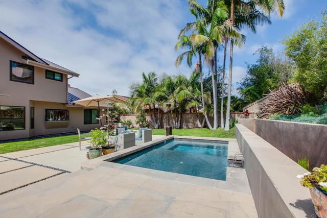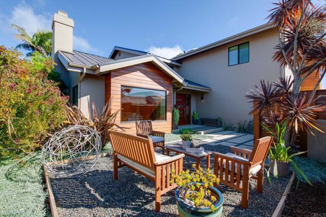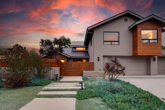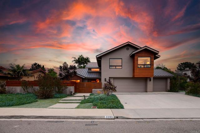 Discover a hidden gem in the coastal paradise of Cardiff-By-The-Sea! This stunning 4-bedroom modern beach home offers an unparalleled blend of luxury and relaxation, truly embodying the North County coastal luxury lifestyle. Enter through an inviting courtyard enclosed with exotic ipe hardwood paneling, offering ample space to unwind amidst mature landscaping and sunshine. Step inside to find elegant Italian hardwood flooring throughout, expansive open-concept living space, perfect for both comfort and entertainment. The kitchen, a true culinary delight, boasts top-of-the-line appliances, a spacious island, and an eat-in breakfast area. Adjacent, a sophisticated wet bar and wine cellar with a split cooling system and 560-bottle capacity caters to wine enthusiasts. Retreat to the master suite, complete with a fireplace and a private balcony. The luxurious master bath features heated floors, a spa bathtub, and walk-in shower with dual shower heads. LaCantina doors seamlessly blend indoor and outdoor living spaces. Outside, your personal oasis awaits with a custom saltwater pool/spa, outdoor kitchen, and a gas fireplace for cozy evenings. Mature landscaping, fruit trees, and two raised planter boxes with a drip system complete the backyard sanctuary. This coastal dream home is equipped with a metal roof, dual energy efficient AC units for upper and lower level, and a privately owned 28-panel solar system with a Tesla battery wall and charger. The 3-car garage provides ample space for your vehicles, surfboards, bikes, and more. Located in a cul-de-sac, just minutes from the beach, restaurants and boutique shopping, in a highly sought after school district. Make your dream a reality with this exceptional home in Cardiff-By-The-Sea!