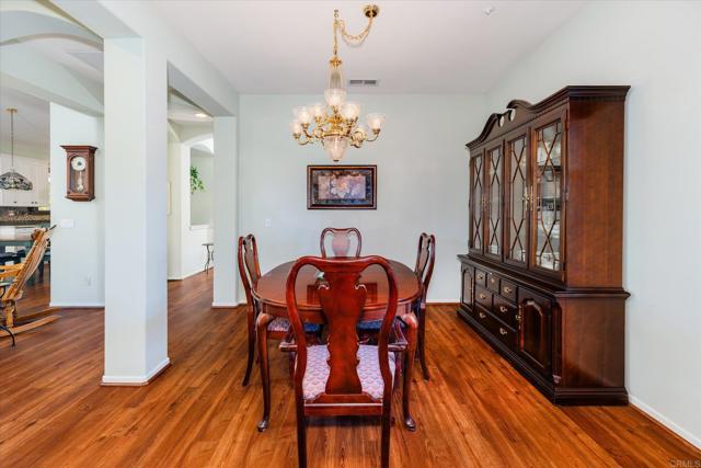 Pride of ownership, single-story Shenandoah model located in Rancho San Vicente. This 3-bedroom, 2-bathroom home offers 2,301 square feet of living space on a 0.50-acre lot, with an optional 4th bedroom and dedicated office/flex space. Interior highlights include vaulted ceilings, a remodeled kitchen with granite countertops, stainless steel appliances, dual ovens, side-by-side refrigerator, and luxury vinyl plank flooring. The primary suite offers natural light, dual closets and a soaking tub. Additional features include a wood-burning fireplace, dual-pane windows, and a 3-car garage. Backyard oasis features mature trees, lush grass, fruit trees, vinyl patio cover, built-in BBQ, and shed. Irrigation provided by a private well and RV parking. This Ryland home is near Simon Open Space Preserve and Cleveland National Forest, with award-winning Barnett Elementary School within walking distance.
