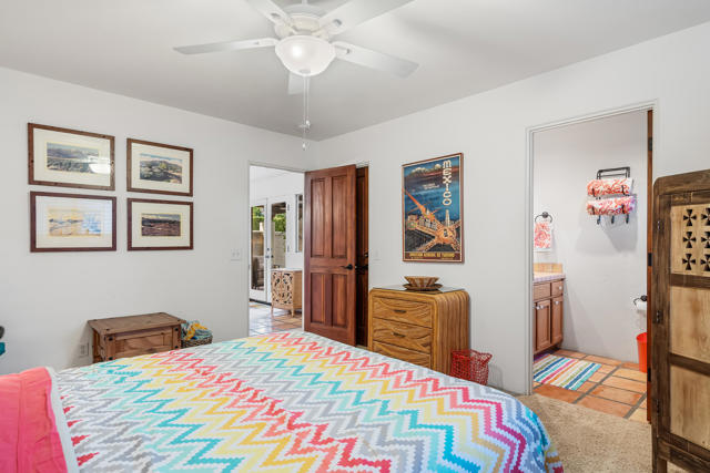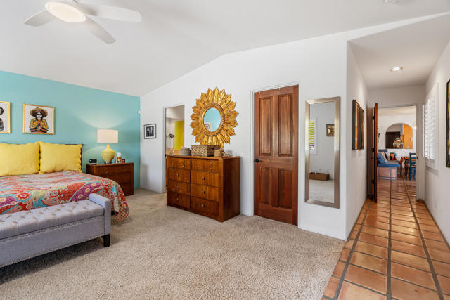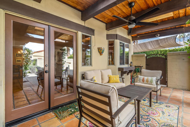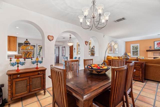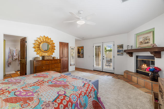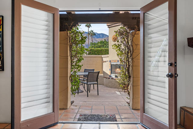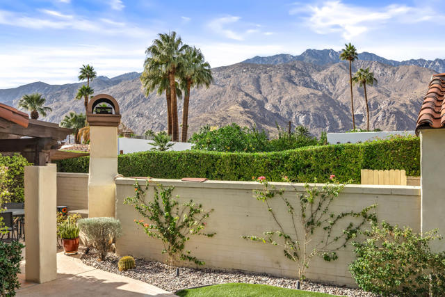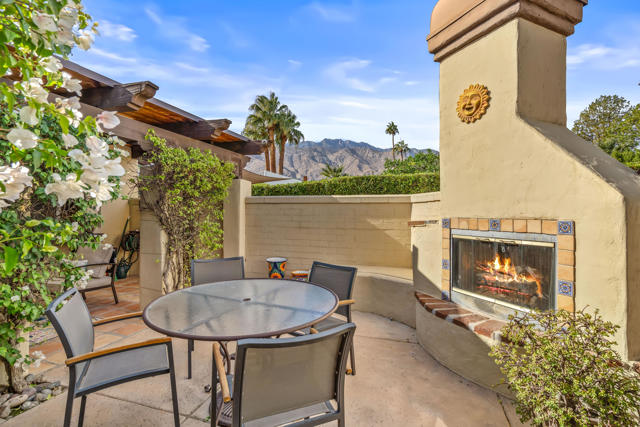 This beautifully, custom built Spanish Hacienda home awaits your personal inspection. Be prepared to fall in love with this gorgeous property within just minutes to downtown Palm Springs on a very quiet street. The Spanish decor and construction is of the highest quality and built in 1999. Enter through gates, beyond walls and lush grounds including mature flowering vines and orange trees to the charming front porch perfect for relaxing and enjoying the SW mountain views. Saltillo tiles throughout the primary rooms and plush carpet is on hand in all 3 bedrooms. There are 3 full bathrooms as well. All rooms in the 2030 square feet of living space are large in proportion and invite the very best of relaxing living while offering a great flow from indoors to out for entertaining. Enjoy 3 fireplaces! In the living room, owner's suite and outdoor patio beyond the fully covered patio accessible from the kitchen's French Doors and the owner's suite. The owner's suite offers dramatic mountain vista views beyond the patio fireplace walk-in closet and dramatic double-vanity bathroom. In addition to windows overlooking the refreshing pebble-tec pool, spa and patio areas also with fantastic west mountain views. All bedrooms offer excellent separation. From the large living room, enter the dining room and beyond the oversized island/bar kitchen with prep sink and additional banquet dining area. Enjoy the charming curb appeal, security, privacy & amenities or use for passive income. Offered Turnkey Furnished!