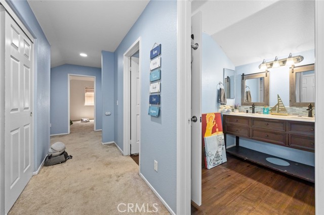 Welcome to this stunning pool home located on a peaceful cul-de-sac in the desirable Three Rings Ranch Park community. This exquisite single-family residence offers 2,578 square feet of luxurious living space, featuring 4 bedrooms, 3 bathrooms, and a 3-car garage. The first floor boasts a lavish master suite complete with a spacious walk-in closet, ample room for a private retreat, and an adjacent bedroom that can be used as a nursery or home office. The master bath includes a separate oversized soaking tub, a shower stall, and an expansive vanity with dual sinks. Additionally, there are two more bedrooms on the main floor, providing ample accommodation for family or guests. Upstairs, you'll find an extra-large bonus room that can easily serve as a fifth bedroom, along with another generously sized bedroom. The bright, airy kitchen is a chef’s dream, featuring a large island and bar area, abundant counter space, a pantry, and ample cabinetry. The kitchen seamlessly flows into the dining and living areas, making it perfect for entertaining. Enjoy the convenience of living just one block from a park, ideal for walking your pets, and directly across the street from an elementary school. This home is centrally located near the Oak Valley Golf Club, Morongo Casino, Desert Hills Premium Outlets, shopping centers, parks, and lakes. Plus, you'll have easy access to the 60 and 10 freeways, ensuring a smooth commute. The backyard is an entertainer's paradise, featuring a pristine rock pebble tec pool, soothing waterfalls, and a cozy fire pit, perfect for enjoying warm summer days and evenings. Don't miss the opportunity to own this exceptional home in a highly desirable Beaumont location. Call today for a private tour!