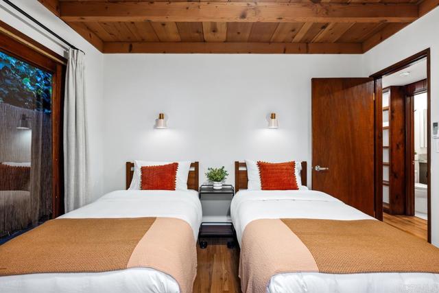 Turnkey, 2023 completely renovated single-level private coastal retreat with an ADU! West of Highway 5, this beautifully updated, single-family home offers horizon sunset views & peek ocean, with the perfect blend of timeless charm and modern amenities. Featuring 4 bedrooms and 3.5 baths, this 1,408 sq ft main home is complemented by an attached private 259 sq ft ADU, ideal for guests, rental income, or multi-generational living. Each home having their own private entry, garage, legal address, plus separate gas and electric meters. Recent rental history $9,000.00/mo. main house and $3,900.00/mo. ADU. Step inside to find white oak flooring, soaring open-beam cedar wood ceilings, and an open-concept layout that flows effortlessly from the quartzite kitchen with oak cabinetry and stainless-steel appliances, to the inviting living and dining areas. Three of 4 bedrooms provide direct access to private outdoor patios via French or sliding doors, Pella windows, with two ensuite bathrooms for added comfort. The professionally landscaped grounds feature three private patios, a tranquil water feature, two cozy firepits, and lush greenery enhanced by automatic ambient timed lighting — perfect for entertaining day or night. The ADU is fully equipped with its own kitchen, full bathroom, stacked washer/dryer, stainless appliances, and a spacious private deck with firepit — a serene escape or income-producing opportunity. Possible future development opportunity! With 2 underlying legal lots that can be developed into a legal twin home, with potential ocean views. Conceptually, each unit consisting of 2150 sq ft attached single family home with each an ADU and each a 2-car garage. Current features include: 2-car garage for main house + 1-car garage for ADU, Cedar shake shingle exterior with true coastal character, quiet, private lot in a prime top-of-the-hill coastal location.