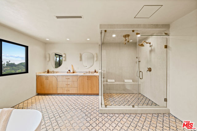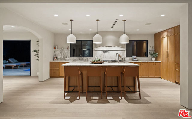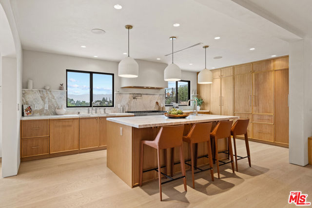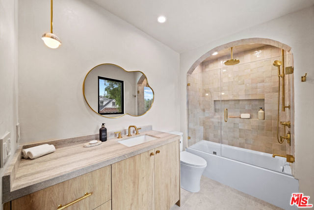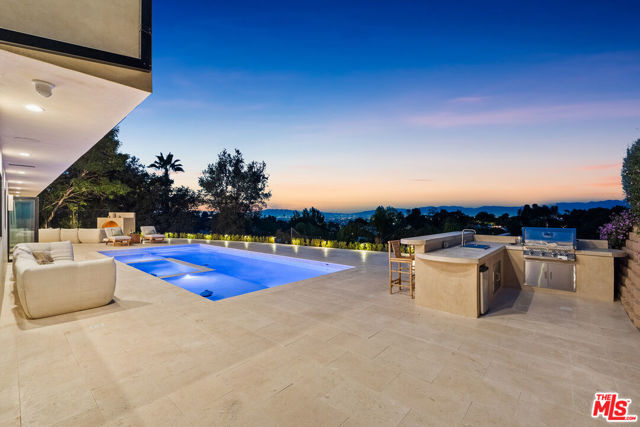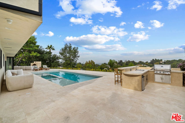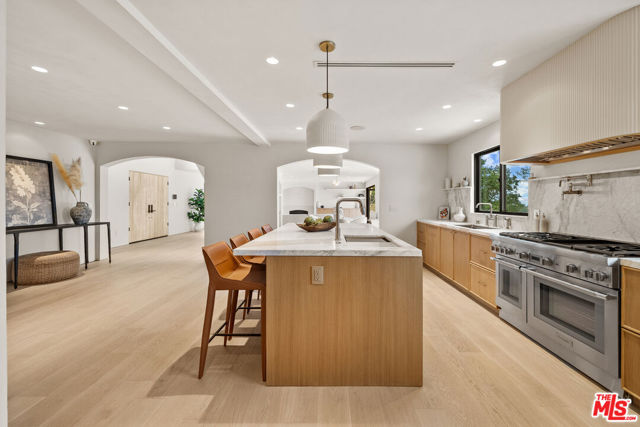 Welcome to Casa Lisa, an Organic-Tulum inspired sanctuary in the hills of Studio City. Completely remodeled from the foundation up, this 5-bed, 6-bath residence offers nearly 3,859 sq ft of refined living, blending craftsmanship with calm, modern design. Inside, Portola Roman-clay walls, custom oak cabinetry and floors, and marble and travertine counters create a warm, organic palette. Soft arches define open spaces that flow effortlessly through large bi-folding doors, inviting a seamless connection to the outdoors. Surrounded by lush tropical landscaping, the property reveals a rare expansive grass yard, salt-water sport pool with two baja shelves, spa, outdoor kitchen, fireplace lounge, and outdoor shower a setting equally suited for tranquil mornings or effortless entertaining. Upstairs, each en-suite bedroom enjoys serene views; the primary suite features a walk-in closet, coffee nook, spa bath, and balcony overlooking the yard and pool. Fully gated and equipped with a Crestron smart-home system controlling lighting, music, and security, Casa Lisa is located south of Ventura Boulevard in the Carpenter School District. Casa Lisa embodies timeless Studio City living natural, luxurious, and effortlessly inviting.
