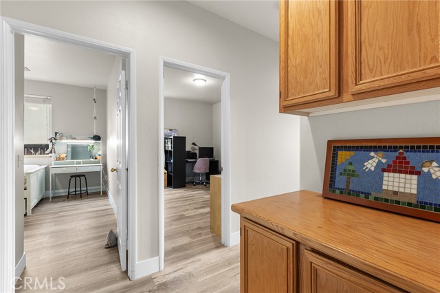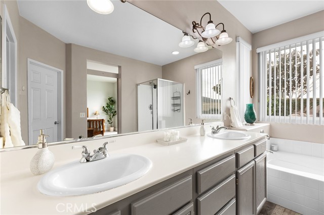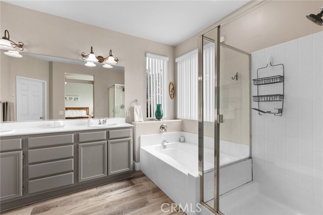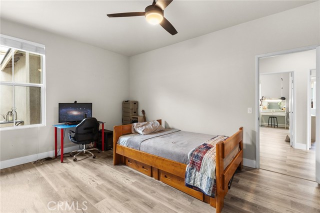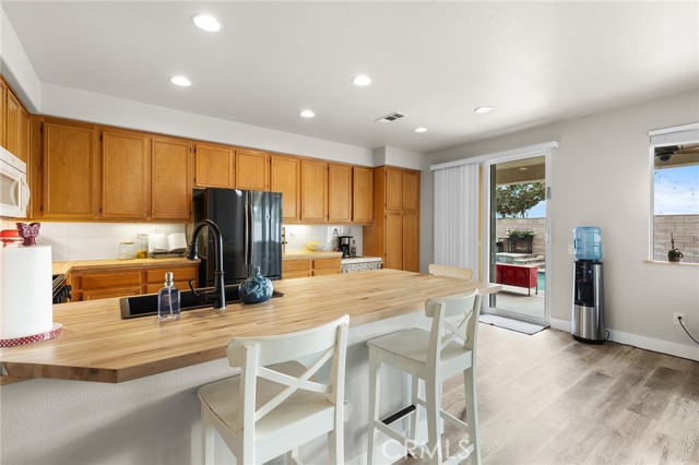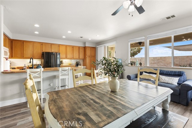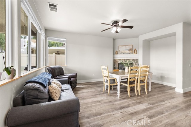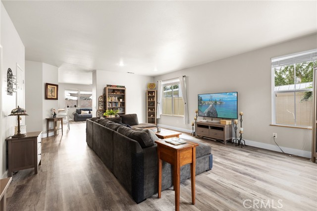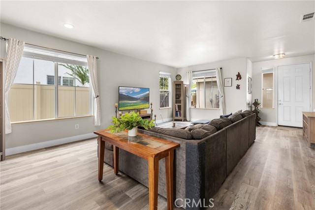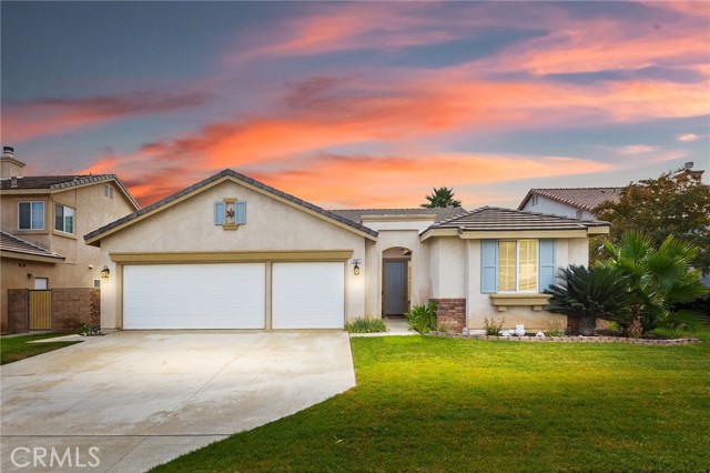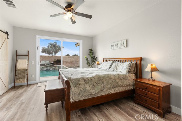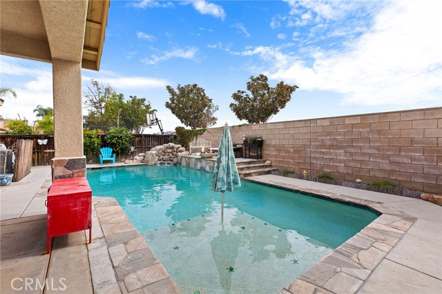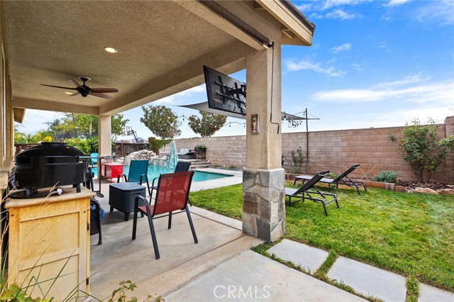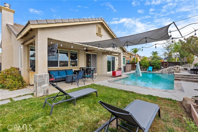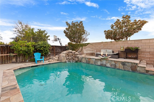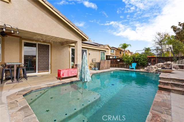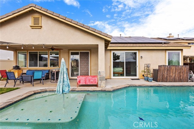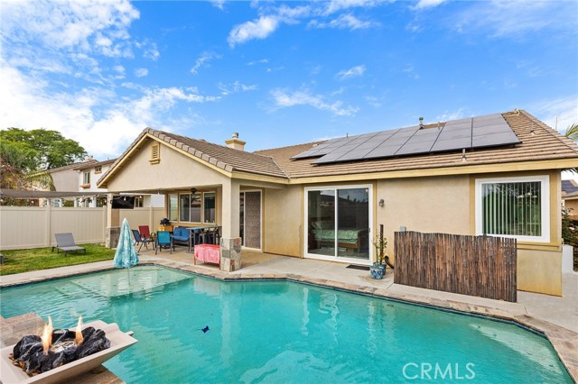 Welcome to your single story Menifee oasis on a quiet cul-de-sac. This beautifully updated 5 bedroom home (note: the large 5th bedroom does not have a closet) offers exceptional indoor- outdoor living with a sparkling private pool, a versatile detached casita, and an inviting open layout filled with abundant natural light. Step inside to brand new baseboards and newly installed LVP flooring that establish a clean, modern aesthetic throughout. The spacious kitchen and living areas flow seamlessly, ideal for both everyday living and effortless entertaining. The separate casita enhances flexibility and is perfect for guests, a home office, multigenerational living, or income producing potential. Enjoy long-term savings and comfort with 29 OWNED SOLAR PANELS and a NEW HVAC unit installed in 2023. Outdoors, the backyard is designed for relaxation, featuring a private pool, covered patio, fire pit, garden beds with drip system, mature lemon and lime trees, and a productive blackberry bush all with no rear neighbors for added privacy and tranquility. The location is equally impressive: hiking trails are within walking distance, everyday conveniences and major stores are close by, and the neighborhood enjoys low traffic flow thanks to its tucked-away positioning. Additional highlights include a three car garage for added space and storage, low HOA dues and taxes, and a community park just steps away. This home checks all the boxes: modern updates, energy efficiency, flexible living spaces, privacy, and a truly inviting atmosphere from the moment you arrive.